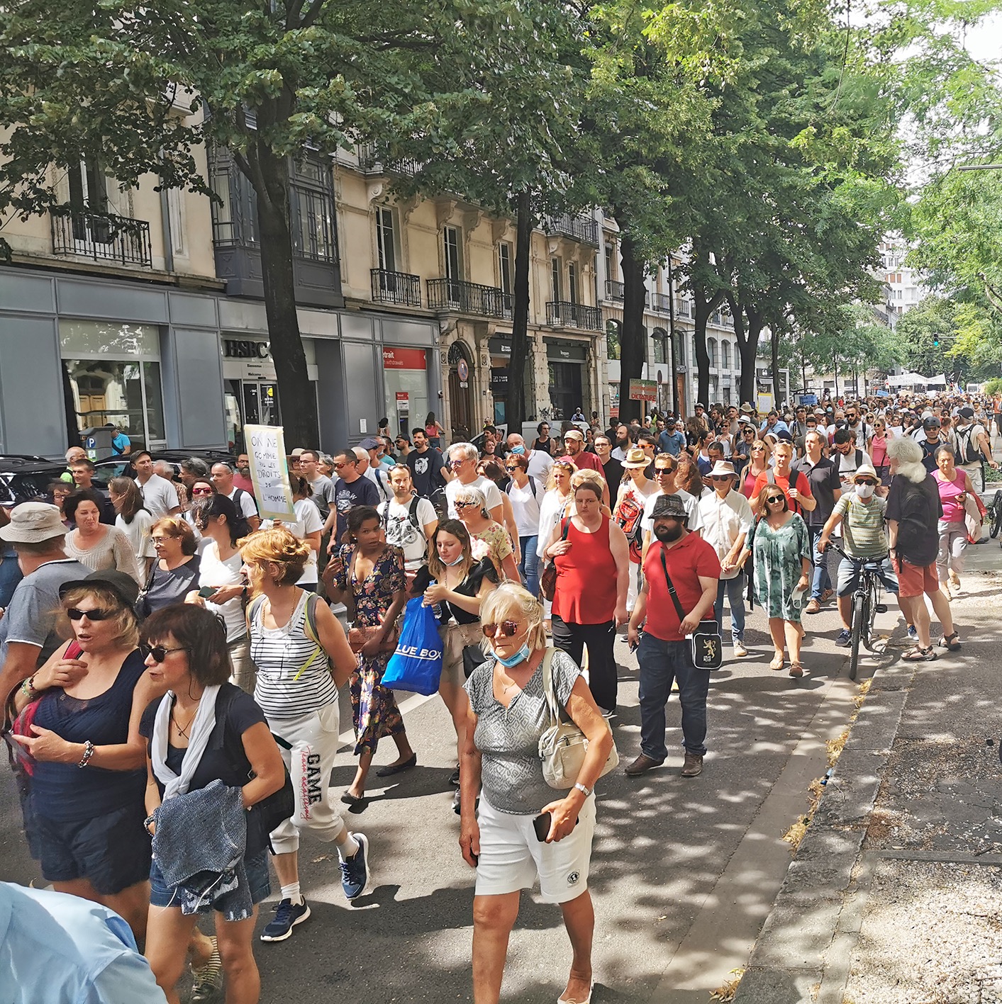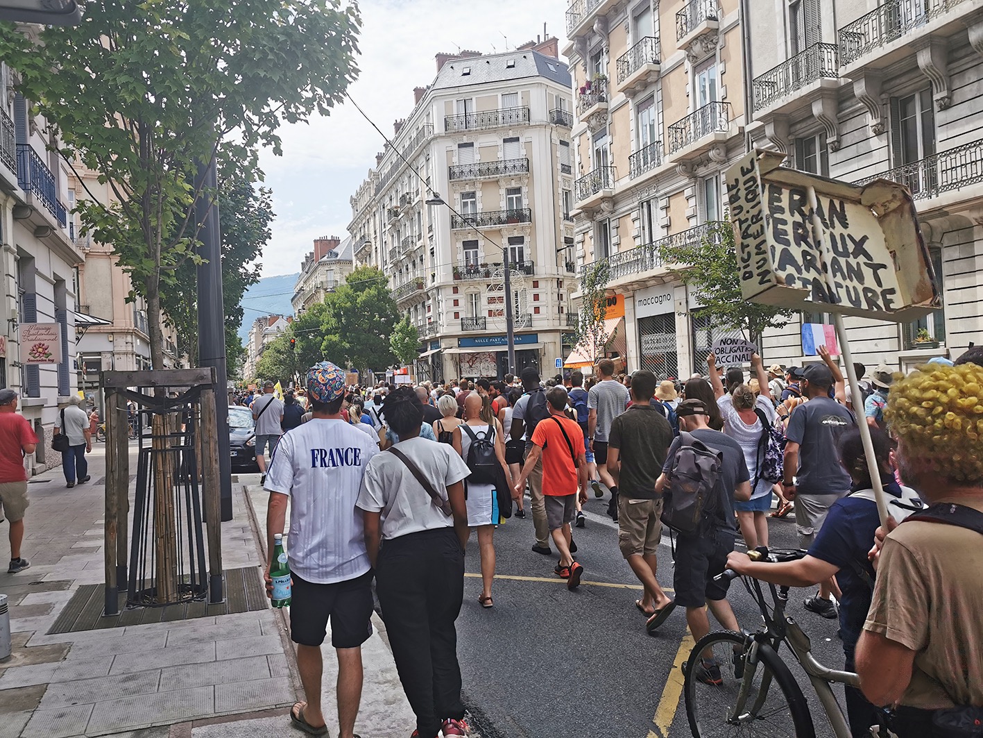 A Grenoble 2500 personnes auront défilé un samedi 24 juillet. On n’a pas remarqué de récupération politique visible mais beaucoup de détermination. Comme dans les manifestations des Gilets Jaunes, il n’y avait pas de traîne-savates, les mots d’ordre étaient repris par tous, en particulier le plus entendu : "Liberté". Dans certaines villes des représentants de la presstitution ont été vilipendés comme ce fut le cas lors des manifestations des Gilets Jaunes.