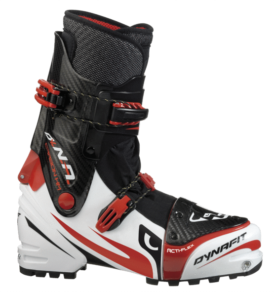 – la Dynafit Dyna, collier carbone sur sabot plastique, 1820 gr/paire en 26. PMC 950 euros.