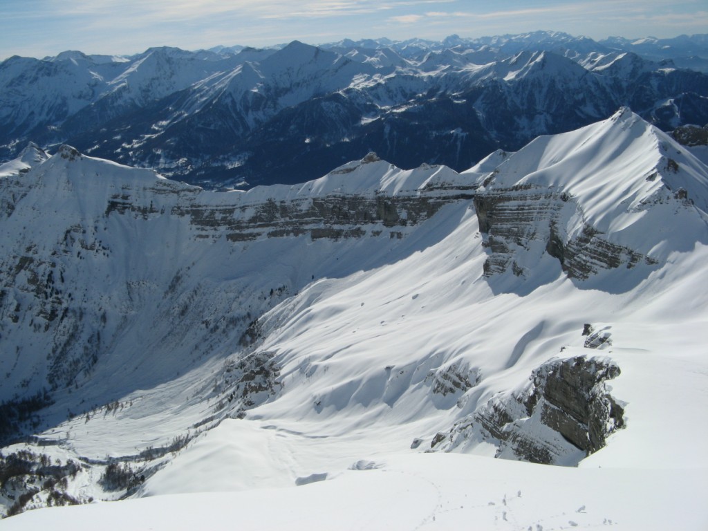 Hier en faisant le Vieux Chaillol, nous avons pu remarquer des pans entiers qui avaient coulés. Une cassure estimée de 30 à 60 cm, mais sur toute une face tel que le Pic Queyrel face Est, ou encore juste sous les rochers de l’arête entre la Pointe Sud de la Vénasque et la Prouveyrat coté Nord (voir photo), soit sur 1.5 km de long ! Point positif, c’est que les coulées vont prolonger l’enneigement des vallons en fin de saison, mais en attendant, il y a des secteurs non purgés qui n’attendent que le passage d’un skieur, donc méfiance... Globalement, on rejoint les commentaires du BRA qui indique une instabilité allant de NW à E.