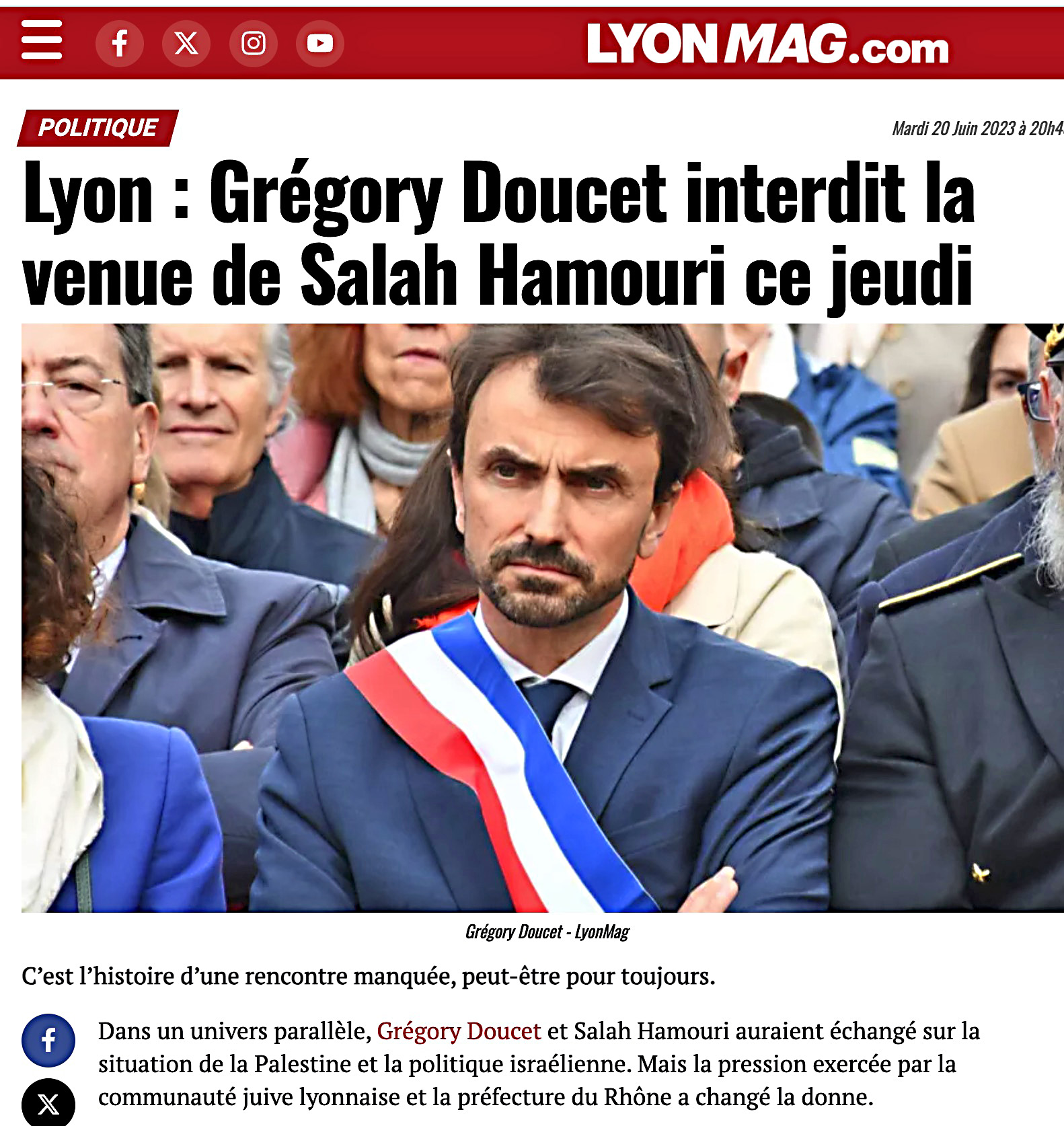 Il y a toujours le personnel pour cela, par exemple à Lyon où le maire "écologiste" Doucet ne semble jamais en manque d’une interdiction de manifestation ou conférence pour la Palestine. Par exemple une conférence de l’avocat[Salah Hammouri en juin 2023.