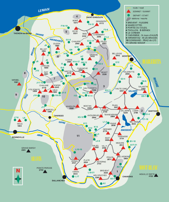 These mountains face the Mont-Blanc but some are not well known. This toponeige covers the French-Swiss mountainous area between the Arve valley, the Rhône river and lake Leman (lake Geneva).