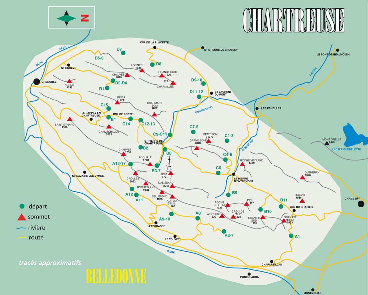 La répartition est assez équilibrée entre les trois massifs : 55 en Chartreuse, 64 en Dévoluy, 63 en Vercors.