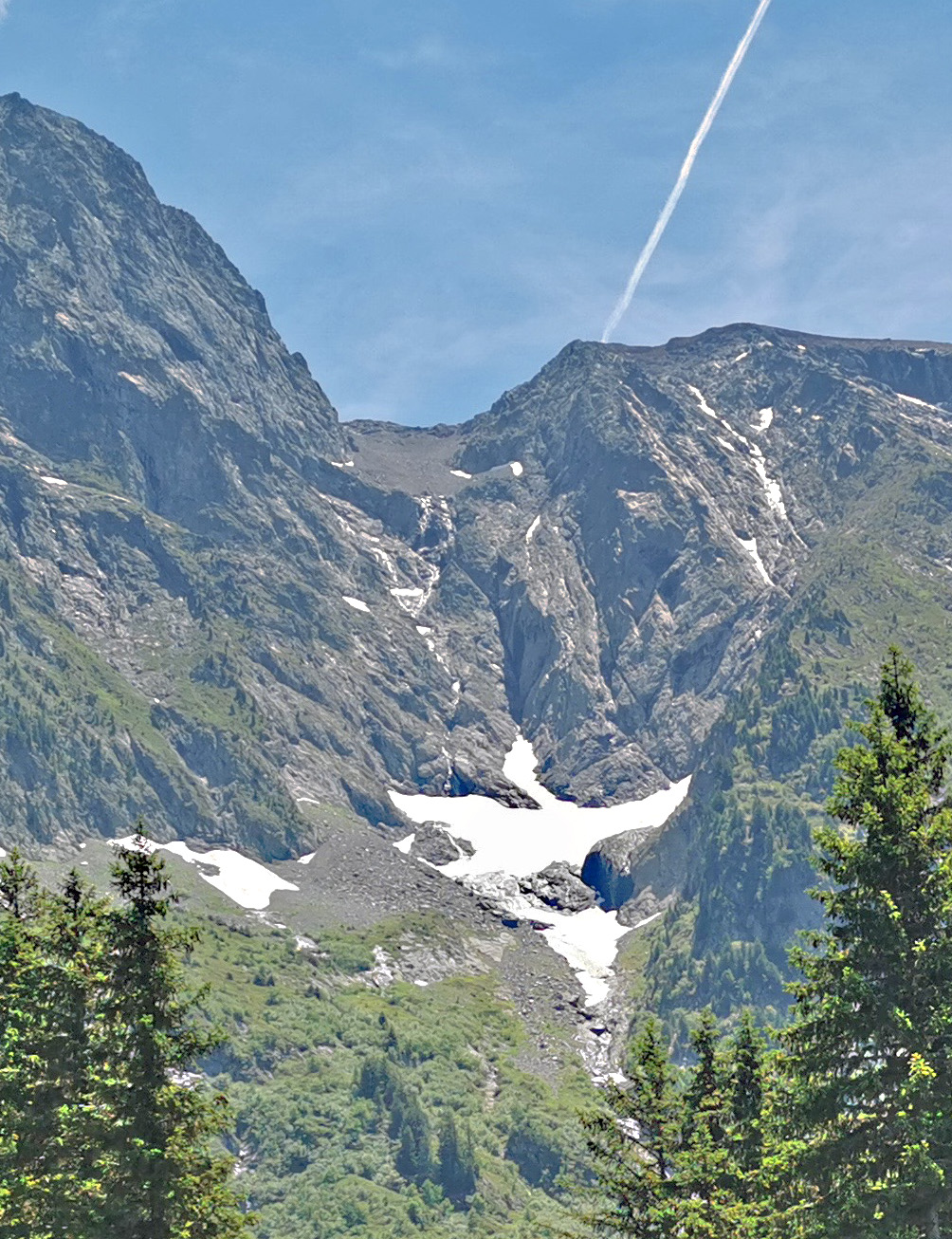 Pouvant encore faire illusion le 14 juin 2022 grâce son encaissement, deux mois plus tard, le papillon a triste mine, bien coupé au centre comme le fut feu le glacier de la Sitre (Belledonne) avant de disparaître. Si un glaciologue ne confirme pas le statut du Grand Van (ou de son voisin de l’Armet), alors le glacier le plus occidental des Alpes remonterait plus au nord, plus à l’est et plus haut (2500 au lieu de 2100) au glacier de Freydane, sous les pics de Belledonne.