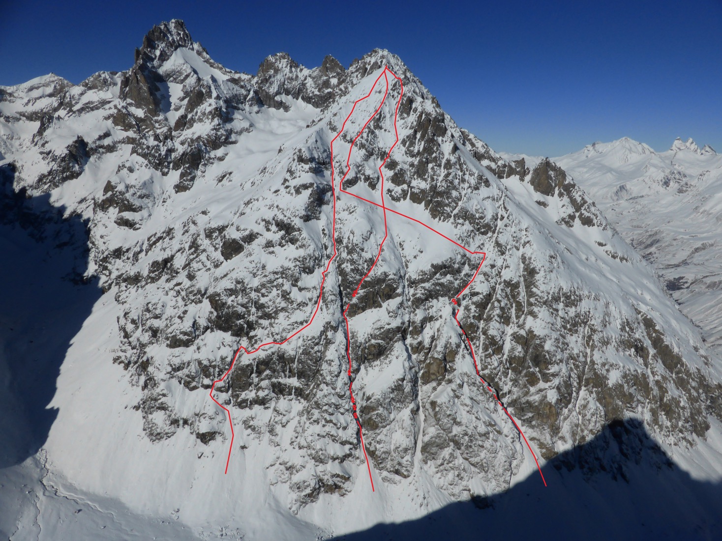 – 17/03/19, Pointe Nérot antécime Est, 3480m, “Heureux qui comme Ulysse”, face E, 1 désescalade de 20m, 2 rappels de 20m et 28m, 1380m, 5.2 / E3 pour la partie sommitale. Hommage à Ulysse Perrier qui skia le premier cette face en 2013.