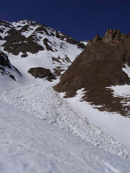 Depuis une dizaine de jours la remontée très forte de l’isotherme et les fortes chaleurs diurnes jouent un véritable rôle de révélateur des conditions bien particulières d’enneigement dans les régions de la haute Durance durant cette saison. Dés le début de l’hiver, avec la carence de neige, se mettent en place des piéges insidieux ; ils consistent en une pellicule de givre de surface qui avec la durée va évoluer en une fine couche de cristaux vitrifiés arrondis ou oblongs ; ils consistent surtout en une couche un peu plus épaisse de gobelets résultat de la transformation négative des petites chutes de neige de fin 2006. Tout l’hiver cette situation perdure car les chutes de neige plus significatives à partir de fin janvier recouvre l’ensemble des montagnes haut alpines. Dans les pentes très fortes " autonettoyantes ", la situation se normalise ; de même au dessous de 1800-2000 en raison de la douceur permanente des températures. Par contre, à moyenne altitude et dans les pentes moyennes à fortes, les accumulations deviennent importantes et le manteau reste superficiellement stable. Il le reste jusqu’à la venue des chaleurs depuis une dizaine de jours. Les coulées deviennent très nombreuses avec départ en plaque et évolution en coulée de neige lourde avec boules. Leur dimension est parfois considérable (combe NO de Rasis, Fonts du Creuzet, Rissace, Grande Manche…).Au cours de la saison plusieurs skieurs, ignorant sans doute cette situation, ont été victimes de cette fragilité cachée, en particulier dans les zones supérieures des mélézins, les pentes souvent moyennes qui les dominent, les talus et les combes sous le vent. A l’occasion d’une série de courses dans des lieux variés je suis allé voir les bords de cassures et j’ai pu constater que sous les parties des plaques encore en place il y avait toujours des restes de cristaux amorphes, humidifiés. Quand la plaque s’affaisse l’avalanche glisse sur le plan lubrifié du début d’hiver. Ce qui signifie qu’il y a eu isothermie sous les couches durant tout l’hiver et le début de printemps malgré la clémence générale du climat. A deux reprises j’avais signalé cette dangerosité…qui reste vraie aujourd’hui en cas de d’horaires fantaisistes. De nombreux skieurs signalent en ce moment cette neige " pourrie ".