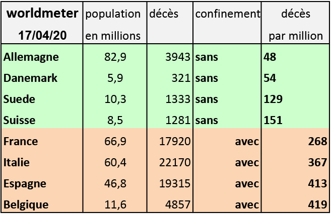 Les pays européens qui se content des "mesures de barrière" et/ou qui comptent sur une immunisation de masse de leur population ont moins de décès que ceux qui enferment leurs populations.