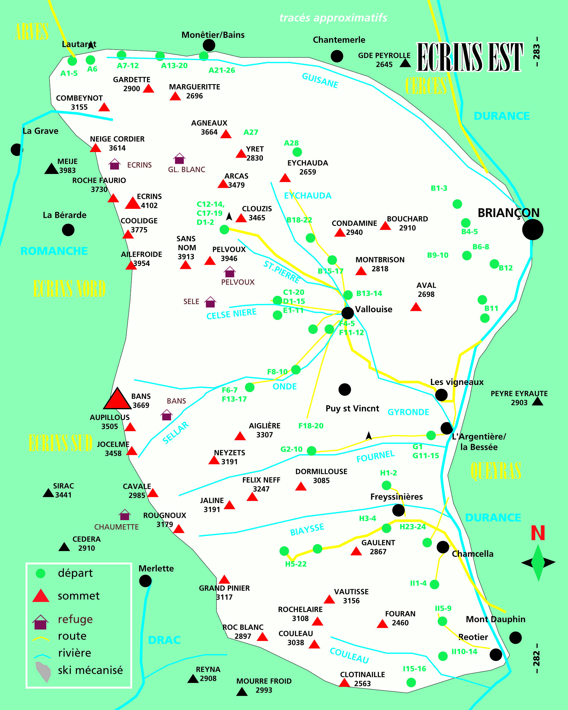 Du Lautaret à Serre-Ponçon ; toutes les courses au départ des vallées orientales : Guisane, Vallouise, Fournel, Freissinières, Tramouillon, Couleau.
