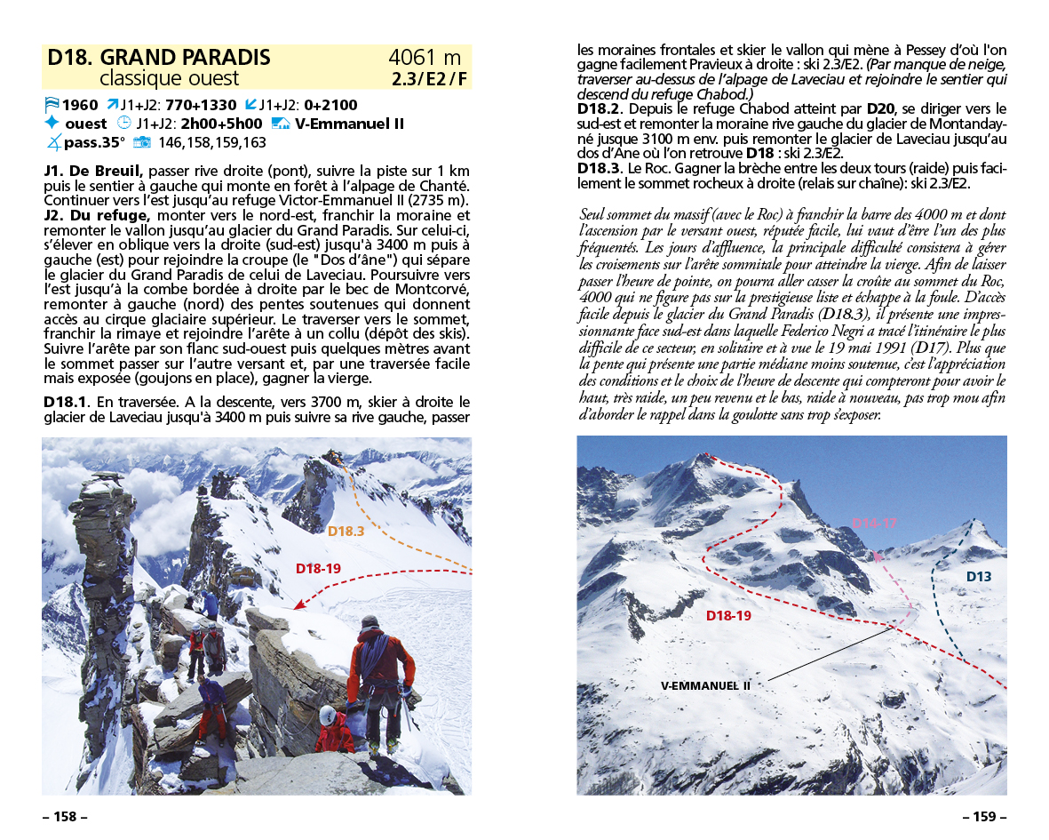 Les fiches techniques décrivent en détail 184 itinéraires de base (et 320 variantes), tracés sur 330 photos.