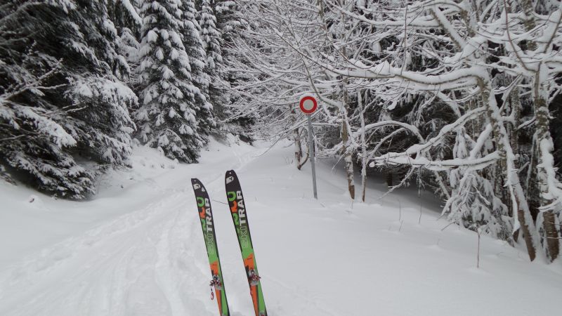 l'enneigement est assez bon quoique encore faible. dans ces conditions le haut de la combe du charvet déjà tracé ne laisse pas beaucoup de possibilités. en revanche la forêt plus bas passe très bien sans toucher.