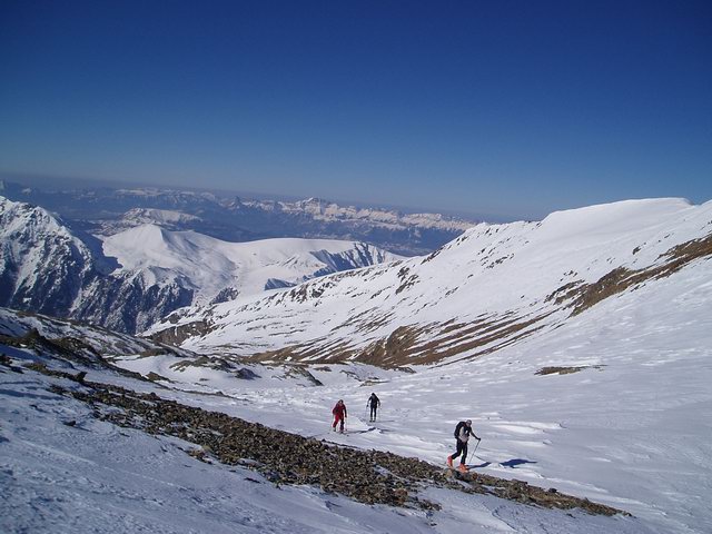 Jolie boucle, 2 petites variantes plus soutenues et amusantes avec une neige transformée à point. La forêt et les vernes du bas de la combe des Ramays passent très bien (rien à voir avec l?Emay), mais bon il fait trop chaud on est passé directement d?un temps de janvier à un temps d?avril/mai, ça fond? Ski dans la soupe à partir de 2000 sauf sur de rares coulées d?avalanche assez lissée