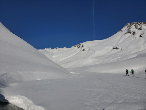 Le vallon de roche noire chauffe vite, la neige transforme au soleil dès 10h. En versant E sous la Pare vers 2500, accumulation de neige bonne à skier.