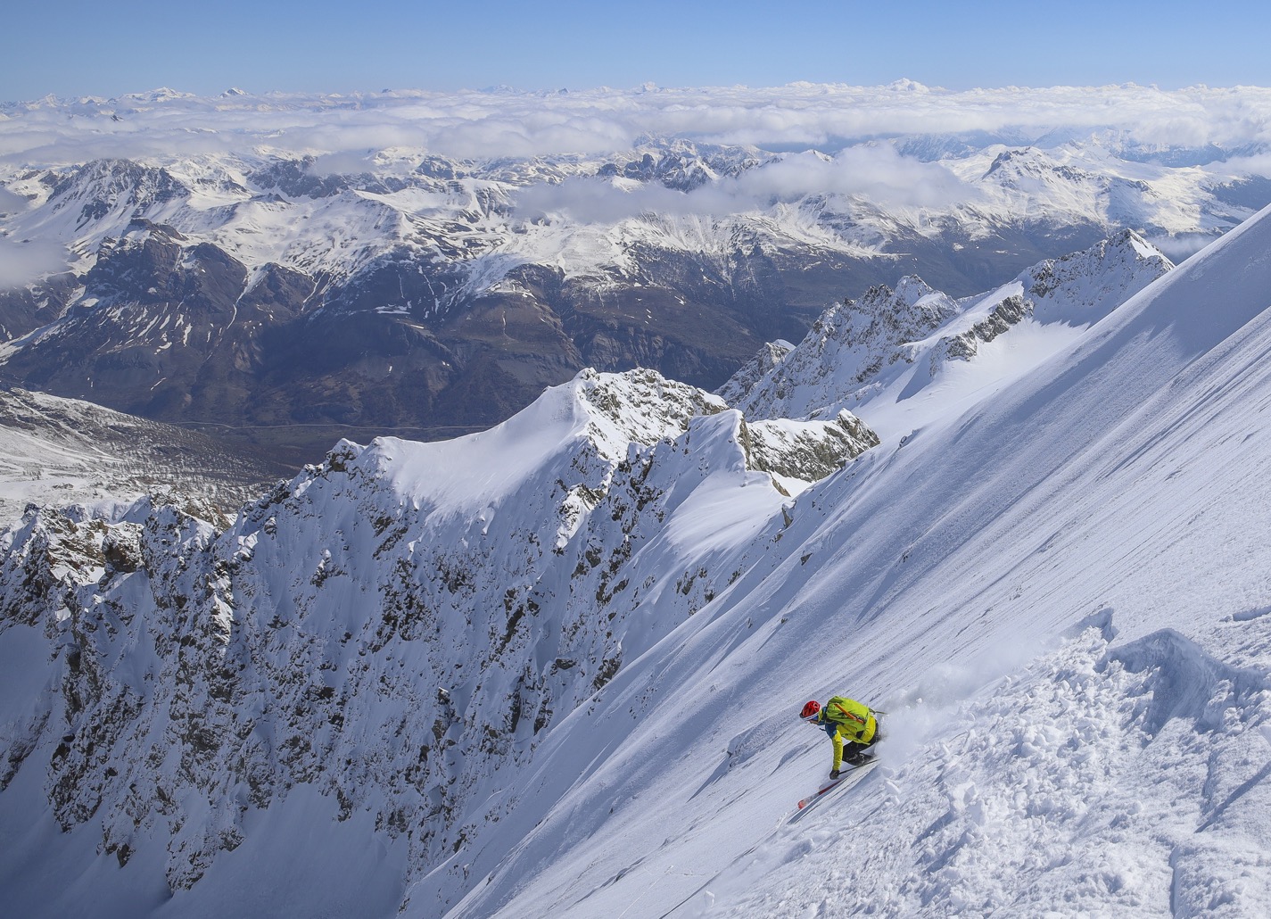 Fabuleuse dans la face. Excellent ensuite également sauf sous 2000 m où c'était ultra collant. ENE du Réou d'Arsine : il a fallu purger avant de descendre, les 10-15 cm de la nuit à peine réchauffés à 12-13h glissaient sur le fond plus dur.