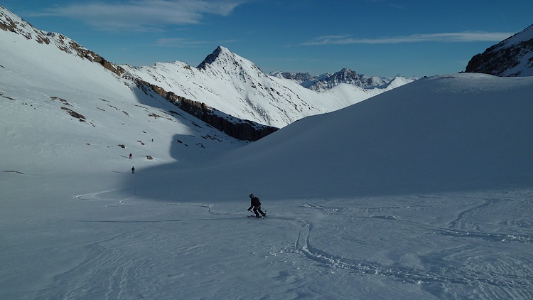 Descente agréable dans une neige très changeante, largement facilitée pour les détenteurs de skis larges avec des chaussures d'un maintien excellent (ça c'est pour mon cahier des charges...).