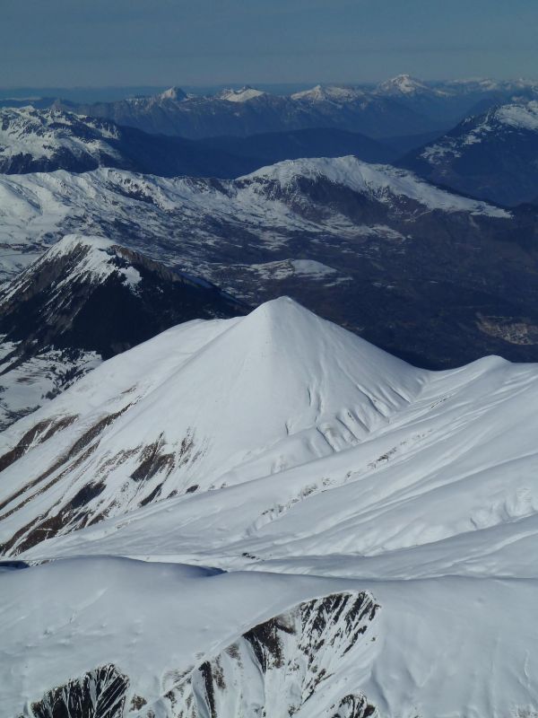 beaucoup de travail du vent au dessus de 2200m avec un manteau bien travaillé. une belle cassure en versant N du Goléon, le couloir de Roche Casse était enocmbré de boules dès le matin et a bien avec les températures du jour.