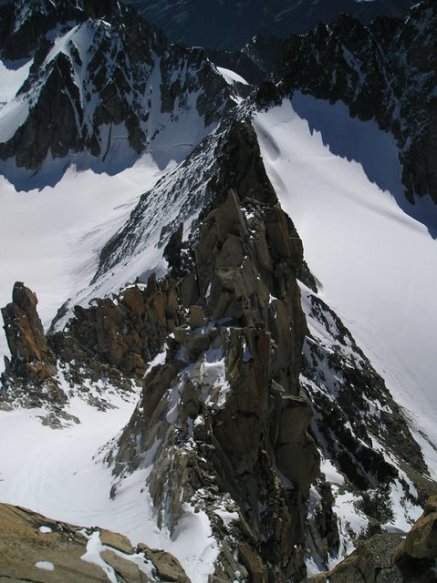 Montée en alpi par l'arête de Flèche Rousse et descente à skis par le glacier du Milieu. Retour à Lognan par le glacier d'Argentière plus vraiment en conditions. Il est préférable de passer par les échelles. Deux très belles courses en une. Départ à 4h.