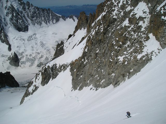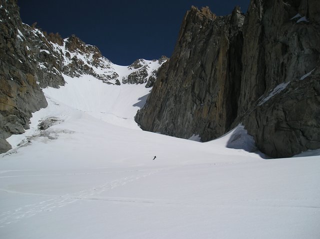 Une très belle descente bien continue et toujours soutenue. très bon accueil au refuge d'Argentière, allez-y! le refuge était seulement rempli à moitié malgré de belles conditions météo et un regel très correct. Pas mal de cordées dans le couloir en Y, Aiguille du Tour Noir. Personne d'autre à ski, mais ça vaut largement le coup.