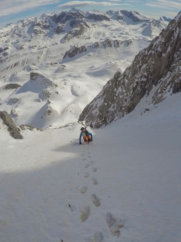Itinéraire très esthétique, plus joli que le voisin Jean Coste et rendu encore un peu plus intéressant avec le petit enneigement de cette année => le ressaut du bas impose un contournement par les rochers rive droite, entièrement skiable.