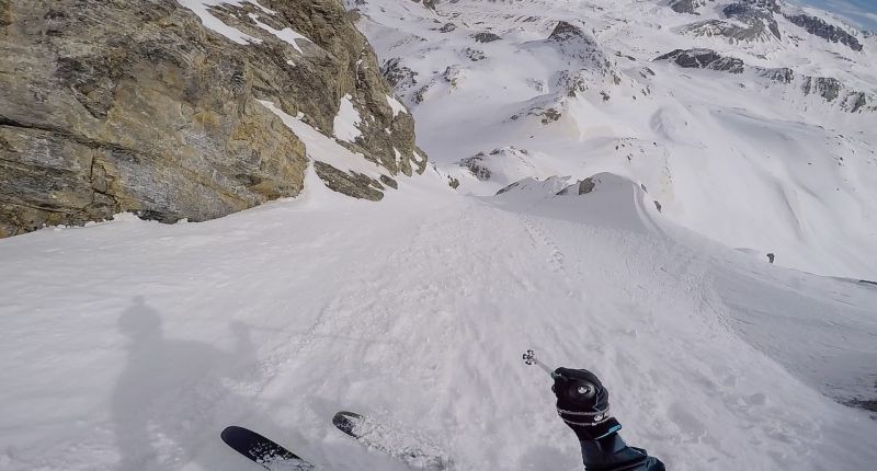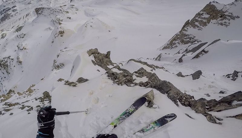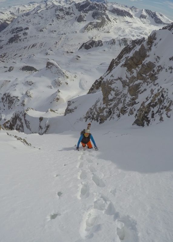 Topo, sortie de droite car la mieux enneigée. C'est la plus exposée avec son couloir final suspendu => 5.2/E4