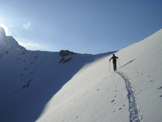 Un des sommet majeurs de Vanoise avec une vue splendide. Malheureusement les cumulus ont commencé à se former très tot vers 10h00 ainsi nous avons profité d'une éclaircie pour descendre la facette. Ensuite, encore du très bon ski avec un petit crux à 50° sur qqs mètres assez expo au dessus de petites barres pour rejoindre l'arete de montée mais qui passe bien. Nous avons descendu la grande combe assez bas pour profiter de la neige transfo (2350) puis avons récupéré le sentier qui ramène au barrage. Petit portage horizontal de 10 minutes sous le plan de la casette . Ensuite on remet les skis pour rejoindre la voiture.