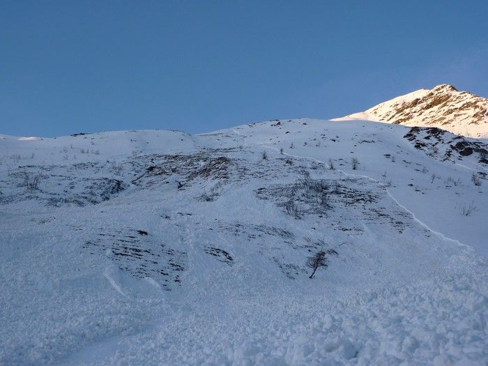 Bon regel et transfo impeccable en sud-est à 10h30. Grosses traces de coulées en versant nord ouvert comme vu un peu partout en ce moment (voir photo).