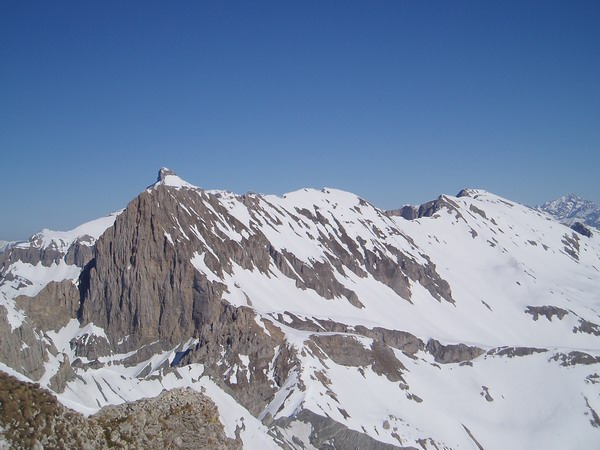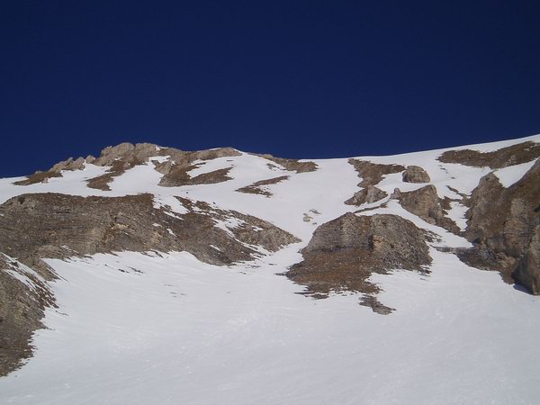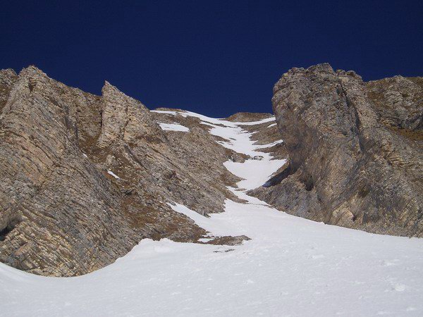 Le couloir oriental commençant à se déplumer un peu je me suis laissé tenté par l'occidental en conditions parfaites (l'étroiture du bas passe très bien). Coté difficulté c'est comparable, en légèrement plus long et en plus exposé, au couloir sud de la tête du Lauzon.