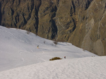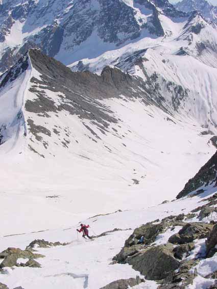 Une superbe boucle sur le valgaudemar avec une incursion sur le Champoléon et un sommet qu'on a pas tellement l'occasion d'atteindre autrement. Course rendue délicate par endroits avec de la neige dure irrégulière dans les sections raides. Bon ski jusqu'à 1600, sanglier sur sentier jusqu'à 1400, à pied de 1400 à 1300
