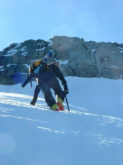 Fort regel qui favorise une montée rapide. Descente agressive sur une neige qui n'a pas décaillée, mais quel plaisir. La couche tombée de l'épisode orageux de début de semaine se fond (!) avec le reste.