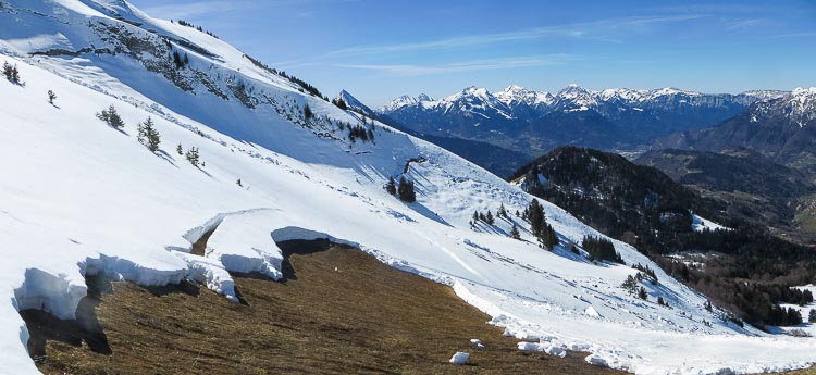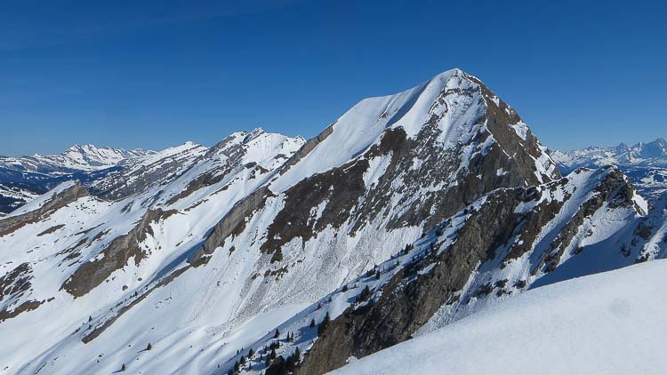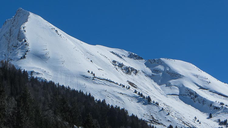 Montée par la face ouest en rive gauche, descente le long de l'épaule nord-ouest puis traversée à gauche. remontée vers la côte 2000, descente directe ouest D+/D- 1300 env
