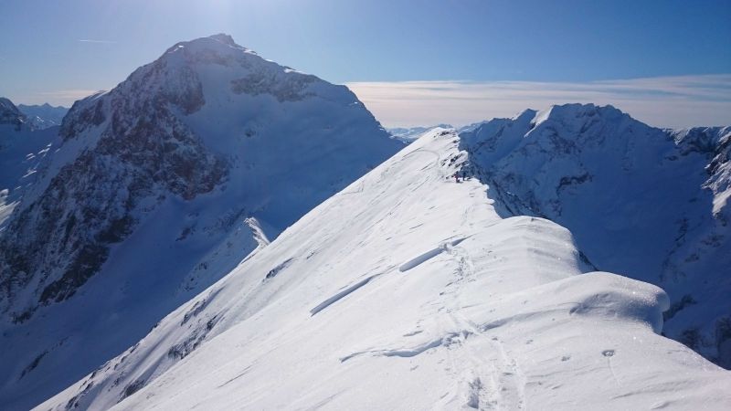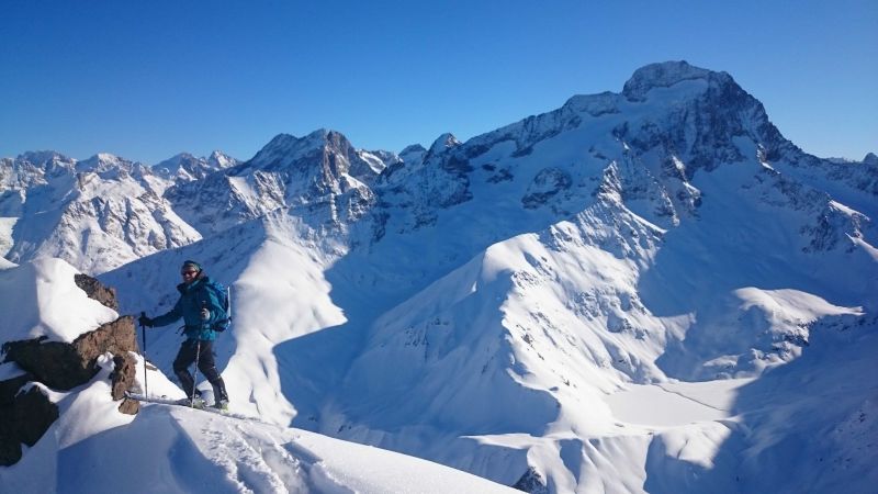 Arrête très aérienne avec une vue à 360° sur les Ecrins.