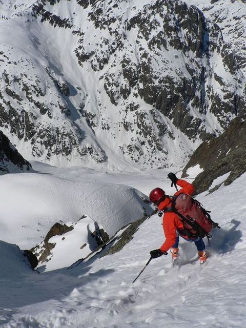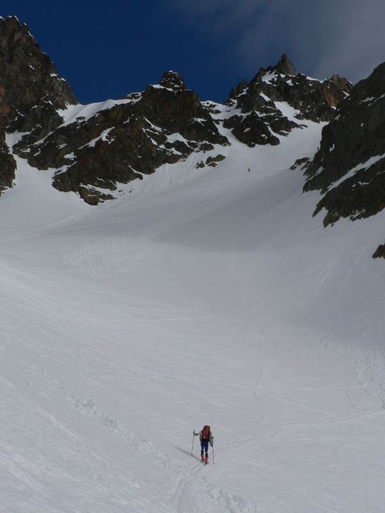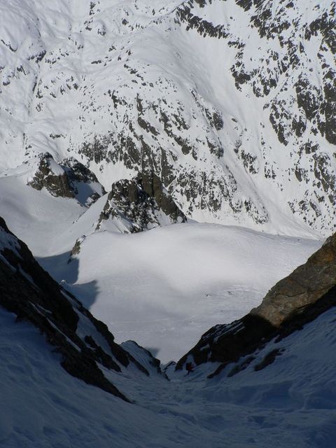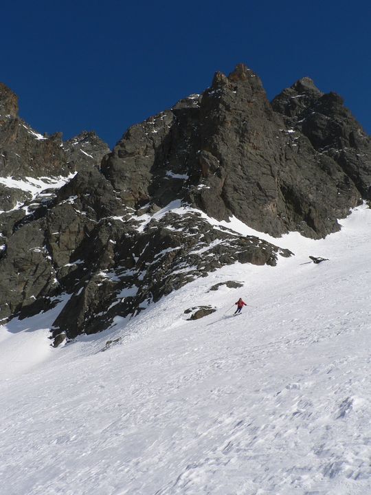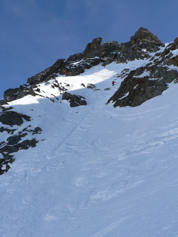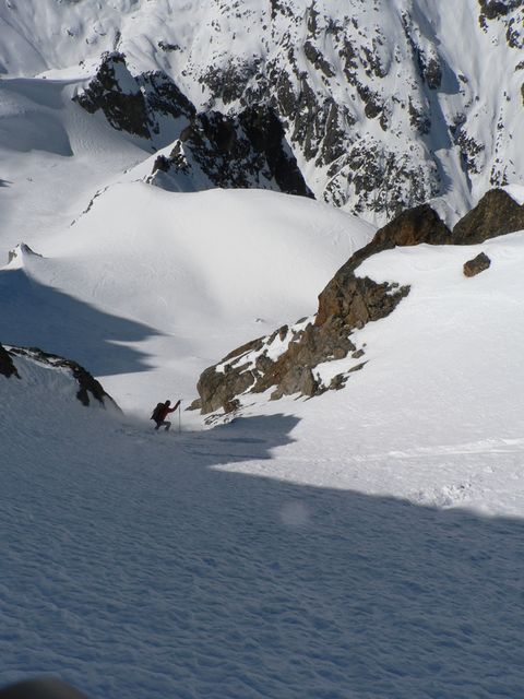 A19.1 était en bonnes conditions (poudre sans cohésion ou légèrement compactée par le vent) et non tracé comme d'autres couloirs du secteur. Comme quoi, même après 2 semaines sans neige, il y a encore des choses à faire dans les aiguilles Rouges en marge des itinéraires classiques qui eux ont été très tracés.