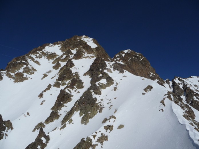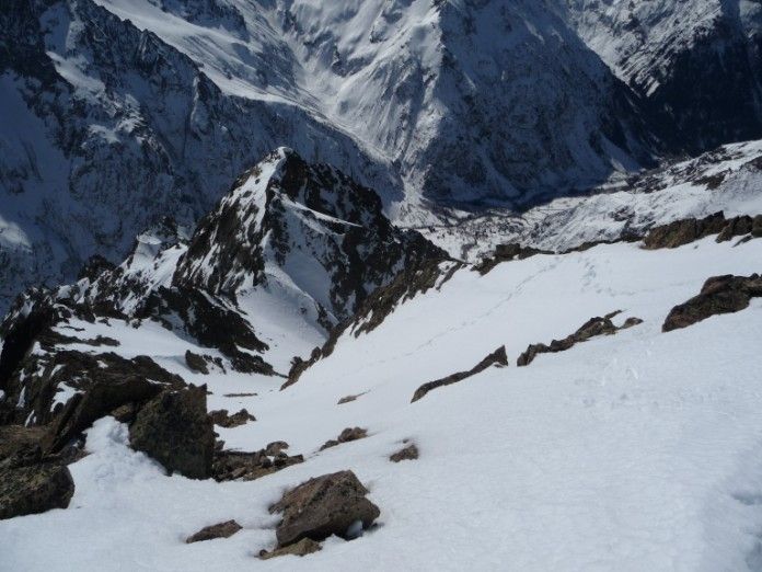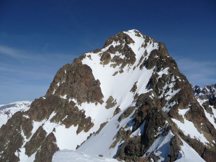 Tout est transfo stable, seulement 5 cm de poudre dans le couloir Sud final, mais après 2 virages, tout est en bas ! Malgré la chaleur, aucune coulée observée, même en versant Est vers le Pic de Valsenestre.