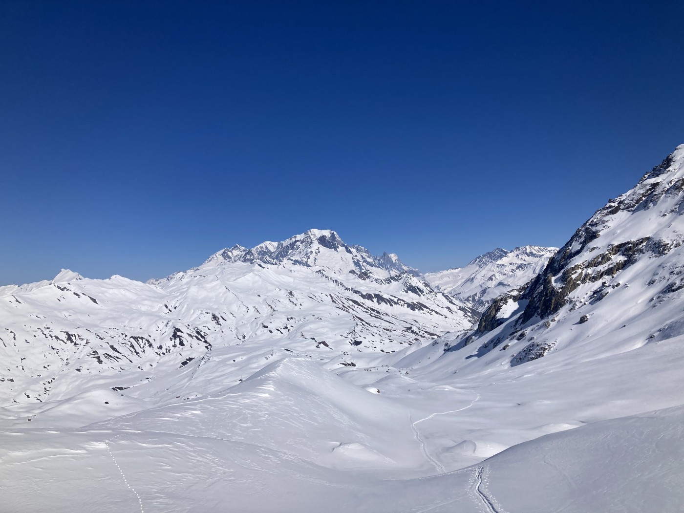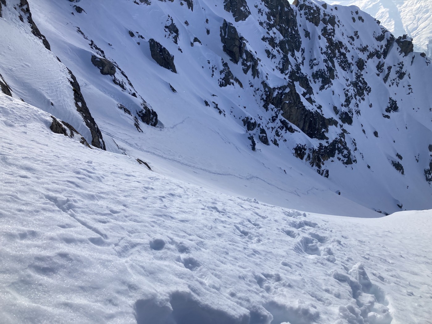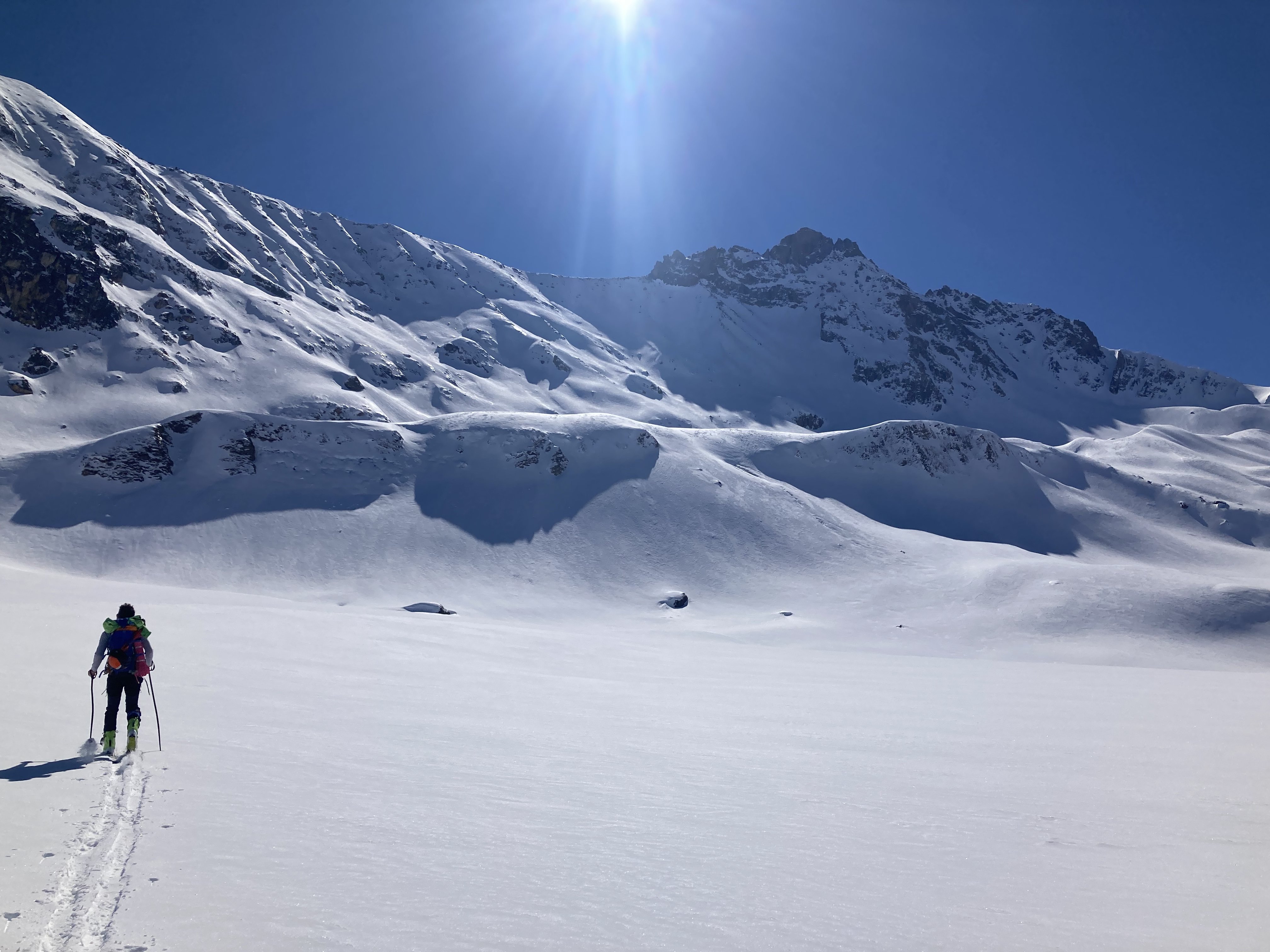 Retour 17h30 au refuge, neige très agréable à skier jusqu'en bas et pas de trace! Fabuleux.