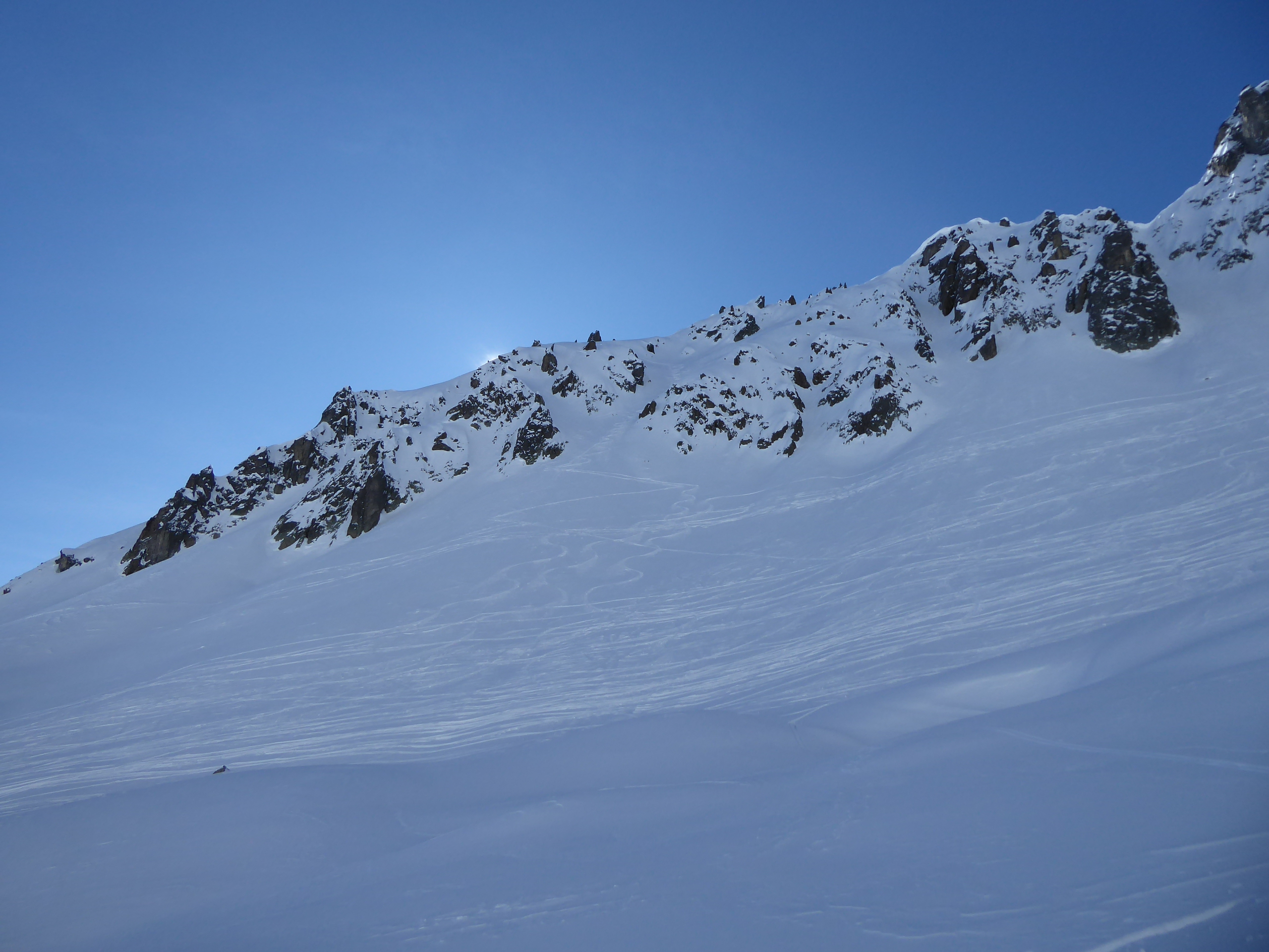 Neige transfo en sud, poudreuse ventée en nord, croutée dans les autres orientations. Pas de signe d'instabilité.