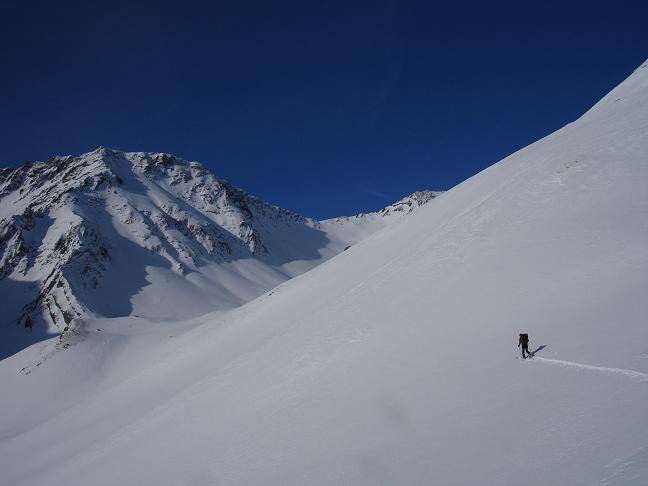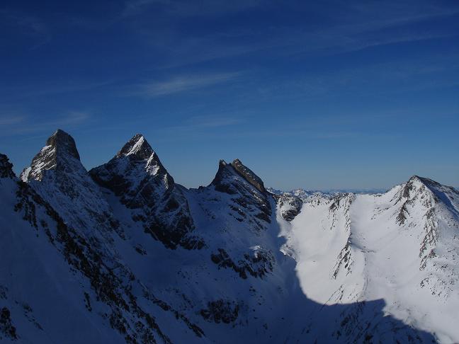 Soit, allons vérifier quand même. Effectivement, les combes sont bien remplies et la poudre est au rendez-vous. Le couloir NE, lui, n'échappe malheureusement pas au fameux verdict.