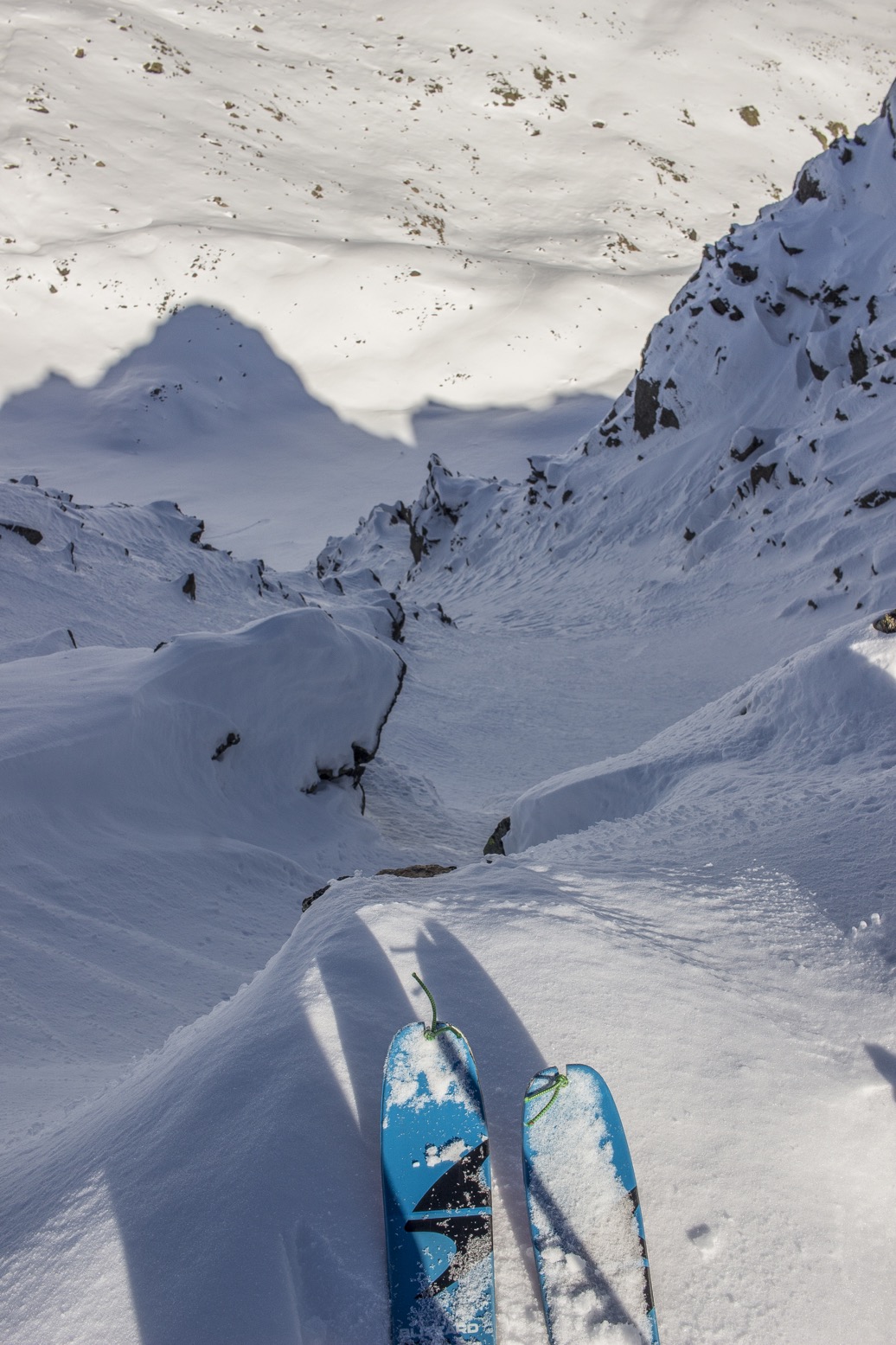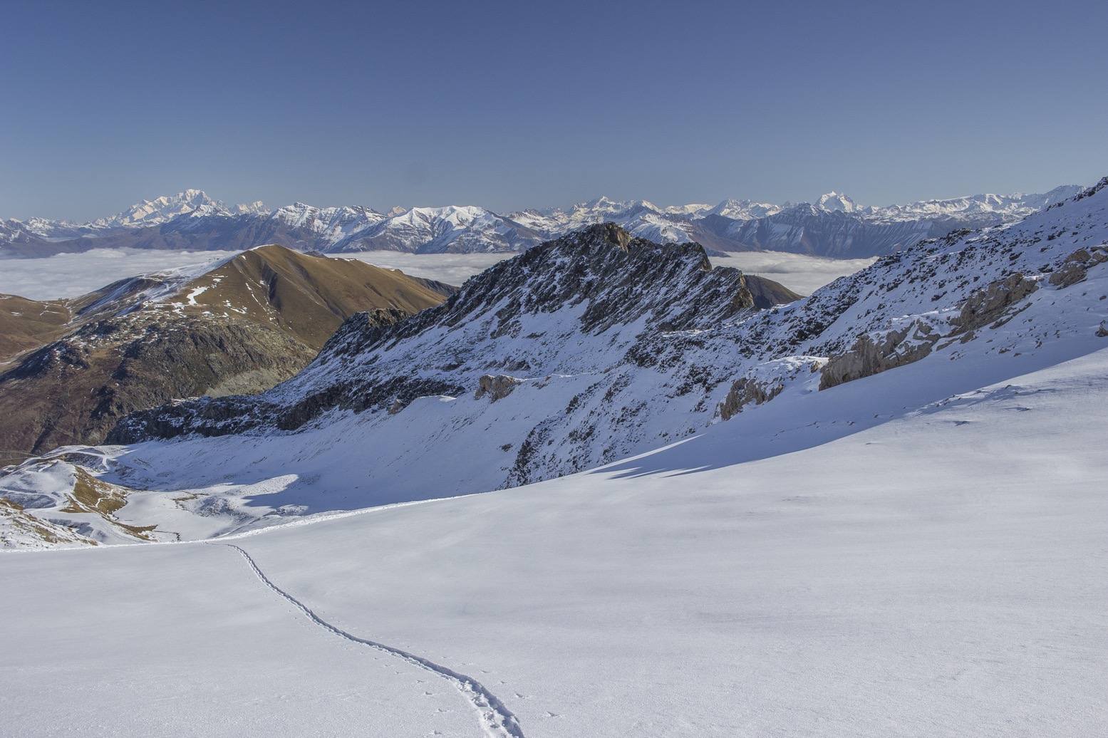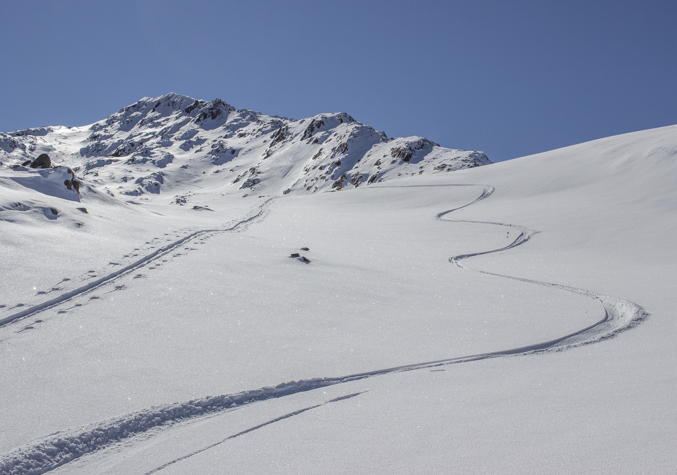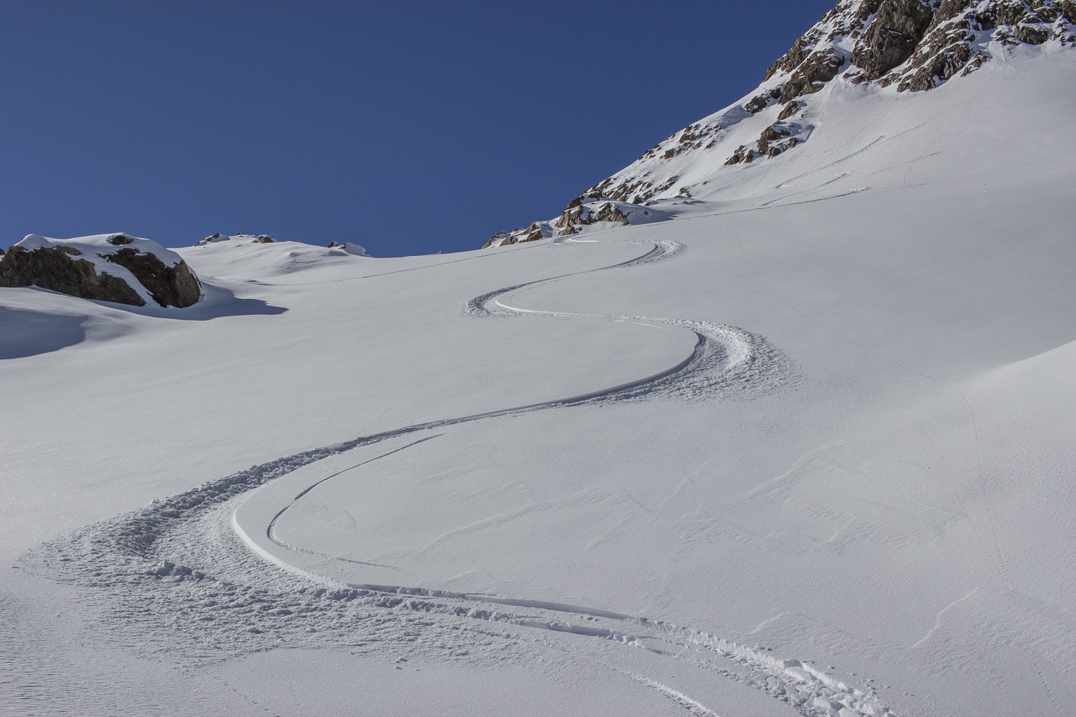 Très bonnes conditions de ski sauf dans le couloir nord avec sous-couche dure surmontée de petite poudre et soufflée.