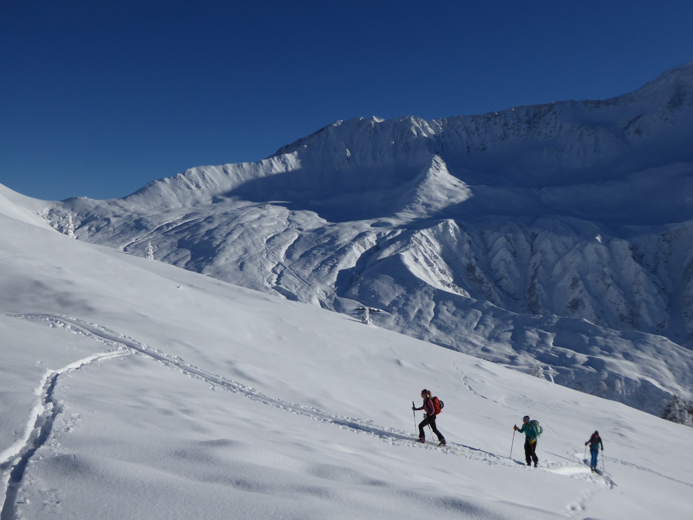Cumul qui commence à permettre de ne plus toucher. Au sommet des Posettes, les cailloux ne sont quand même pas très loin. Pas d'instabilité remarquée aux altitudes et dans les orientations fréquentées.