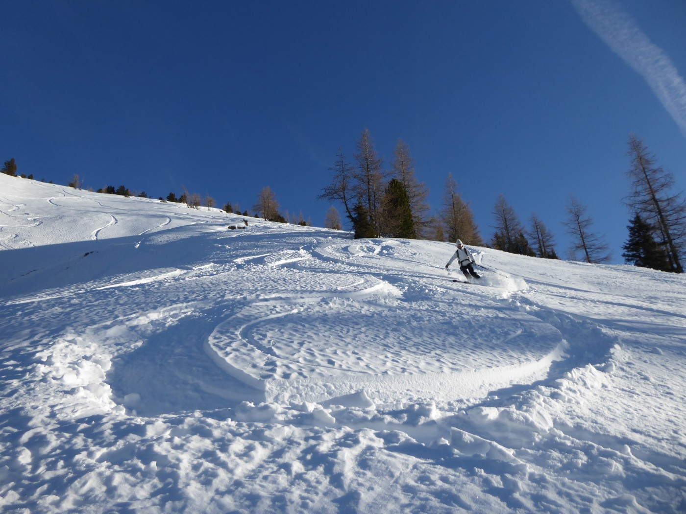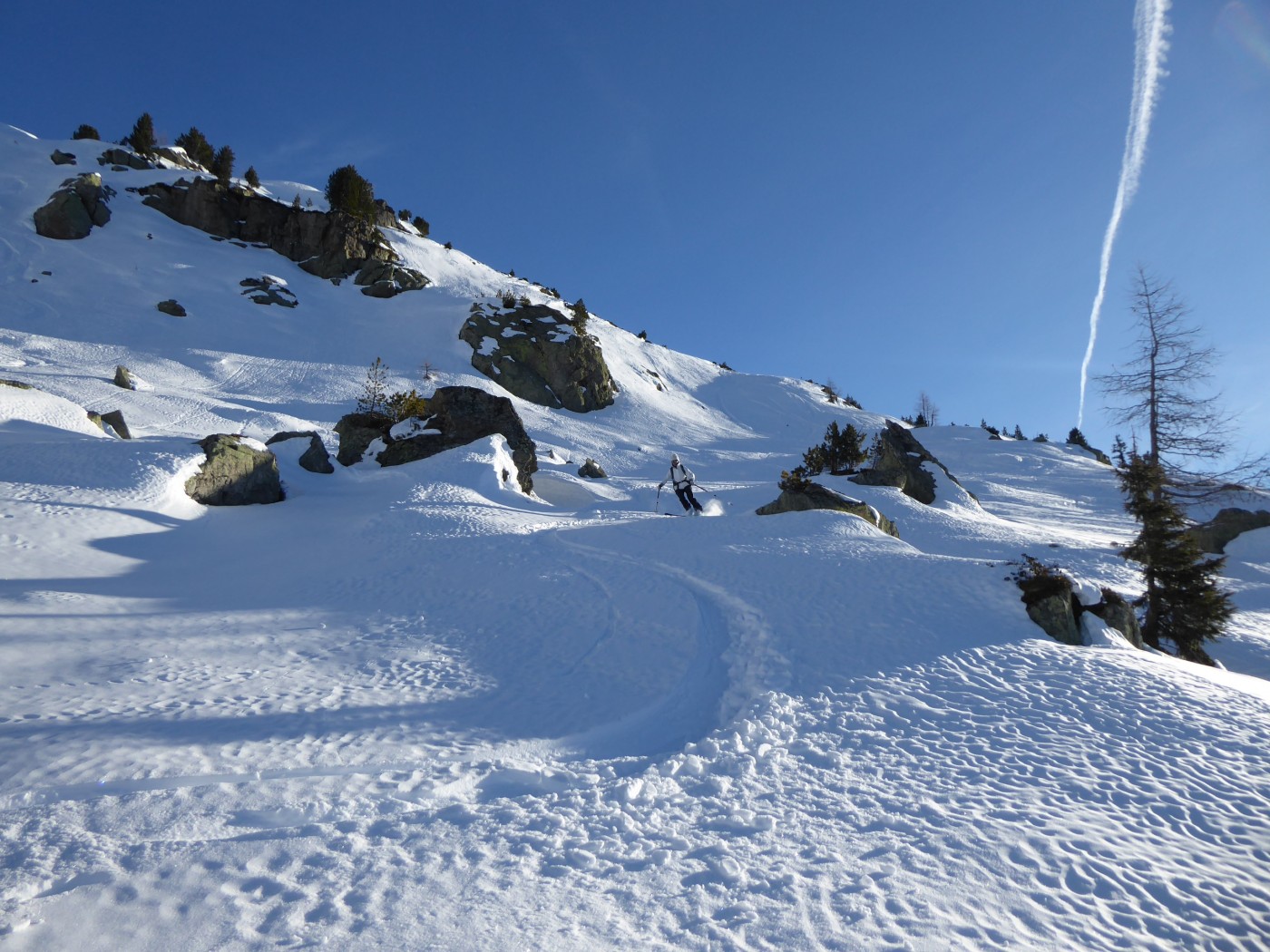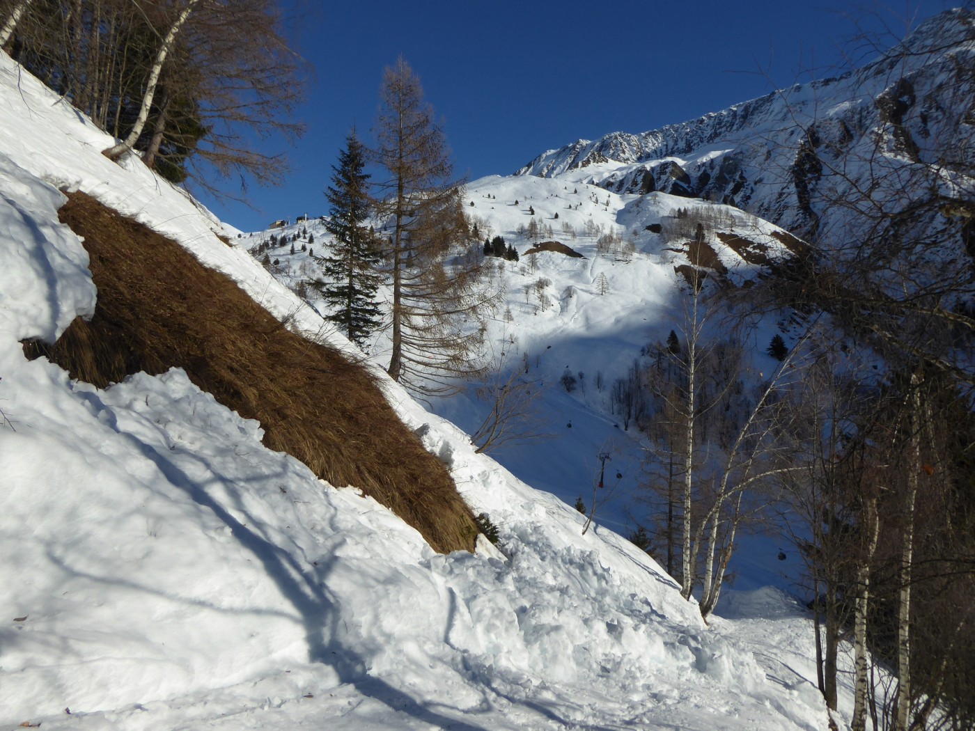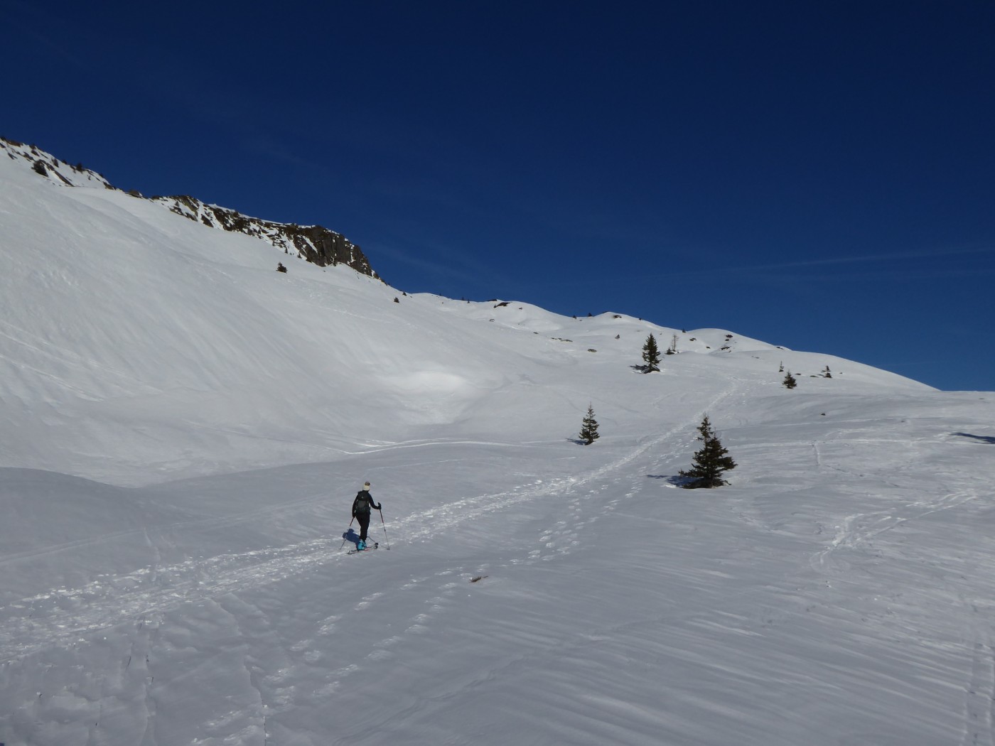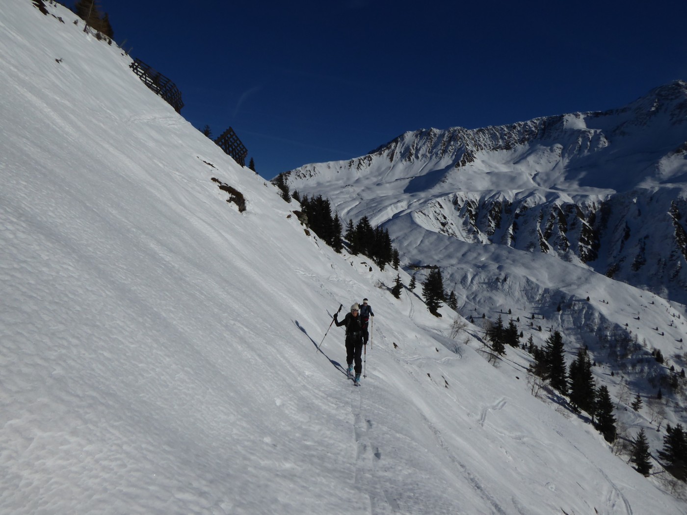 Dans les orientations sud parcourues la neige est dure. Côté ouest (à nord-ouest) encore un peu de poudreuse, de la neige ventée voire dure sous les arbres dans la forêt. Dans le bas de la montée, côté sud, quelques coulées sont parties au sol.