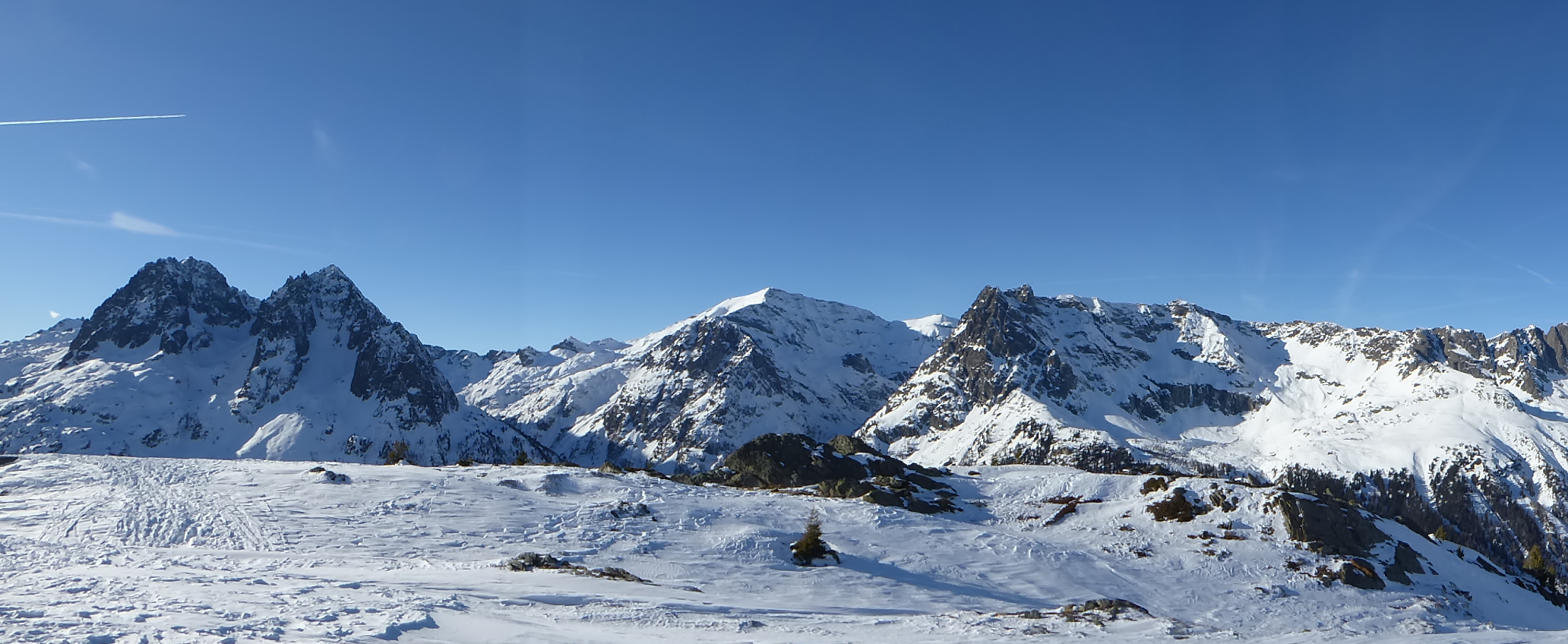 Conditions de ski moyennes mais traversée plaisante pour les points de vue qu'elle propose. Le bus comme le train n'étaient pas pleins (places assises disponibles dans chacun).