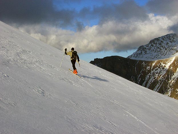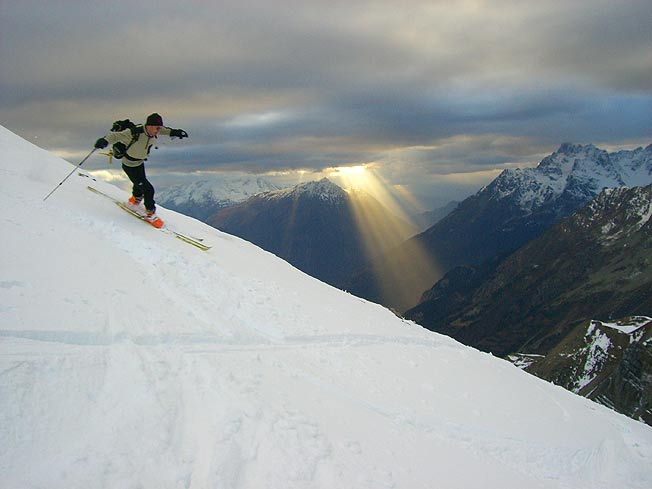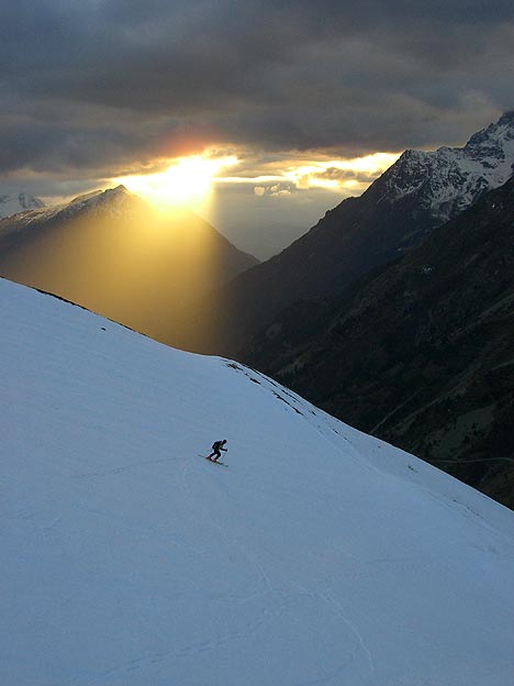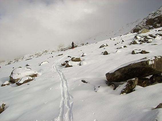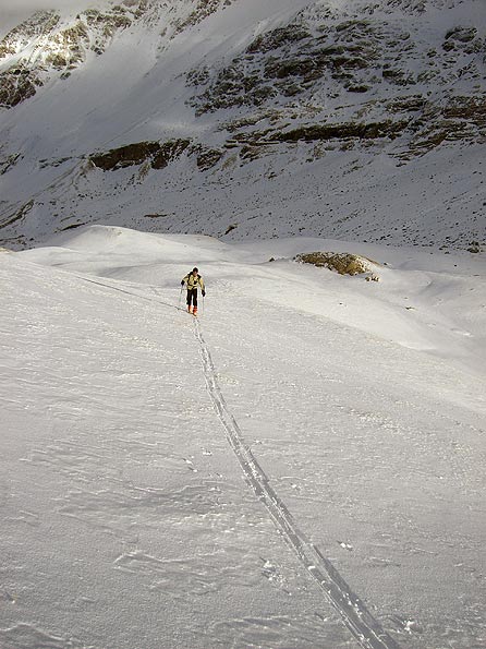 3 mois et demi après le faux départ de la saison à Bionnassay, on peut (enfin !) commencer à sortir les skis. L'enneigement est très pauvre mais le ski est tout à fait possible sur les pentes herbeuses dès 2000 m et surtout dans les versants ensoleillés où la neige, bien humidifiée, forme une sous couche portante. Et ce jour (excepté le slalom entre les pierres peu agréable même si on a peu touché du côté des Cochettes), les faces skiées l'ont été dans de bonnes conditions de neige, en grandes courbes sans toucher. portage = zéro.