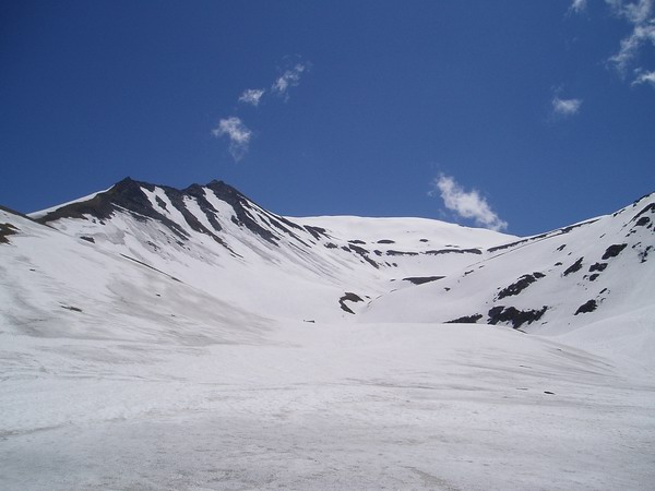 Du névé tout le long. Quelque soit les orientations toujours un faible enfoncement (même à pied) sauf dans les zones proches de l?herbe ou des rochers ou la couche n?est plus importante. Du très bon ski de printemps donc. Trace d?un léger regel en nord à partir de 2400.