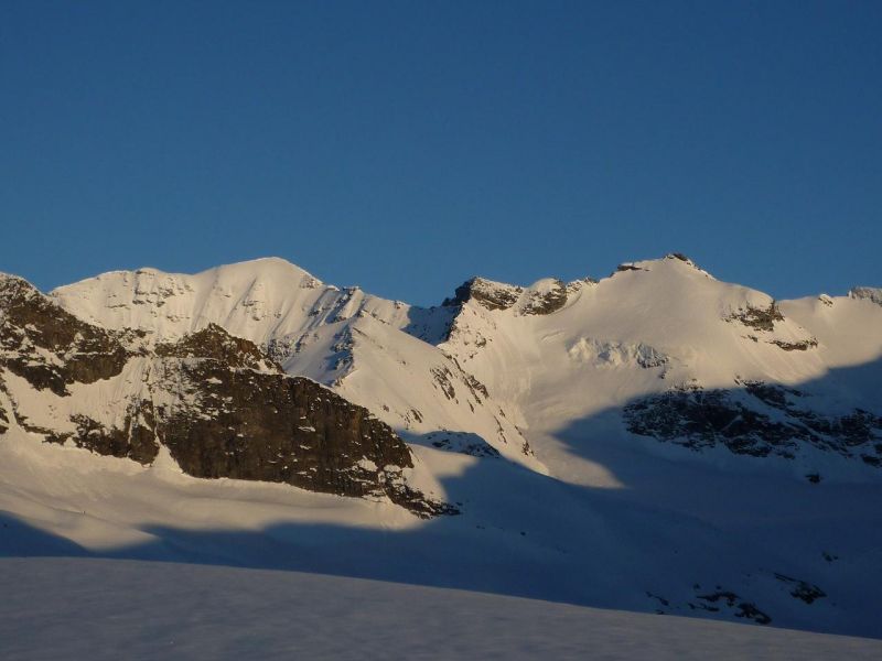 Partis pour la FN de la Grande Ciam, on s'est résignés à changer d'objectif. Clément, Etienne et Nicolas, que je rejoins le soir aux Evettes suite à leur boucle du jour, ont des infos fraiches : la face a été descendue par 9 personnes samedi, le seul skieur parti du sommet a déclenché une plaque heureusement sans conséquences, un skieur a dévalé sous leur yeux la moitié inférieure de la face sur le dos, là encore sans conséquences (miraculeusement). En voilà des news réjouissantes...