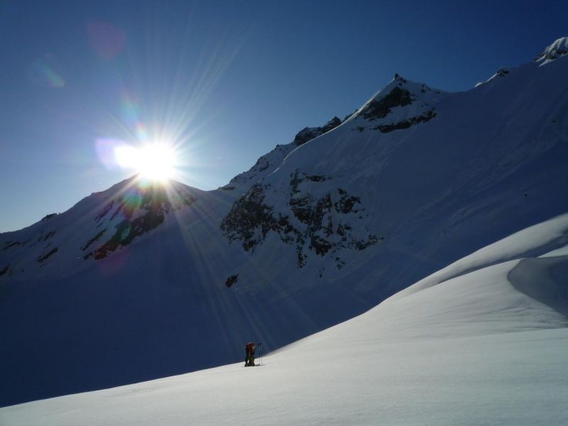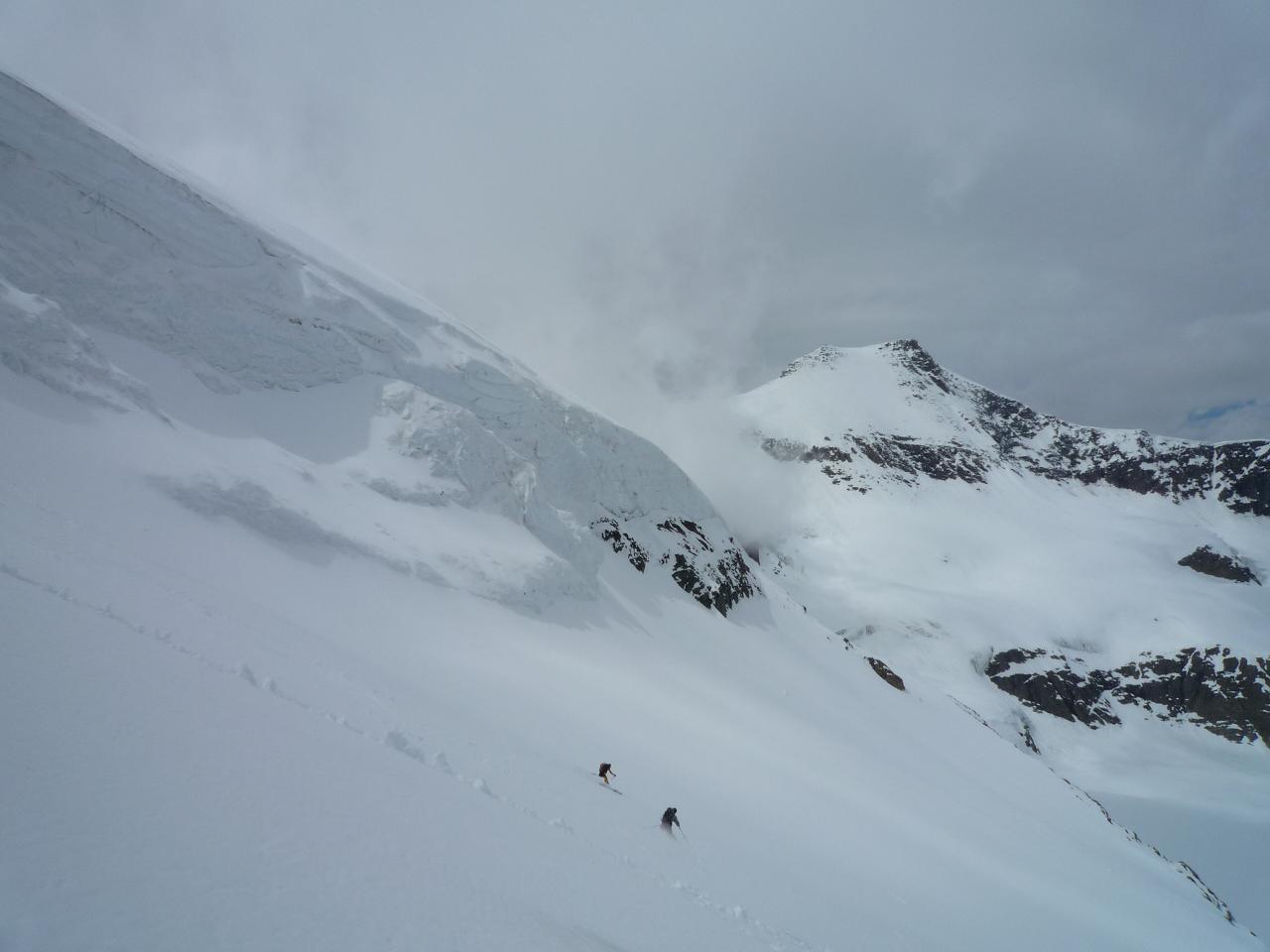 Dans la partie supérieure de la face est, méfiance car la petite couche de poudre récente a tendance à glisser sur le fond humide.