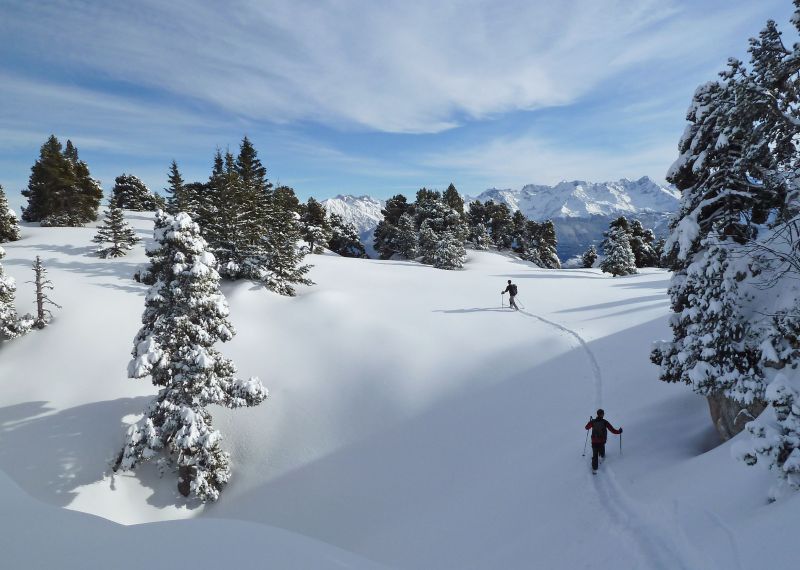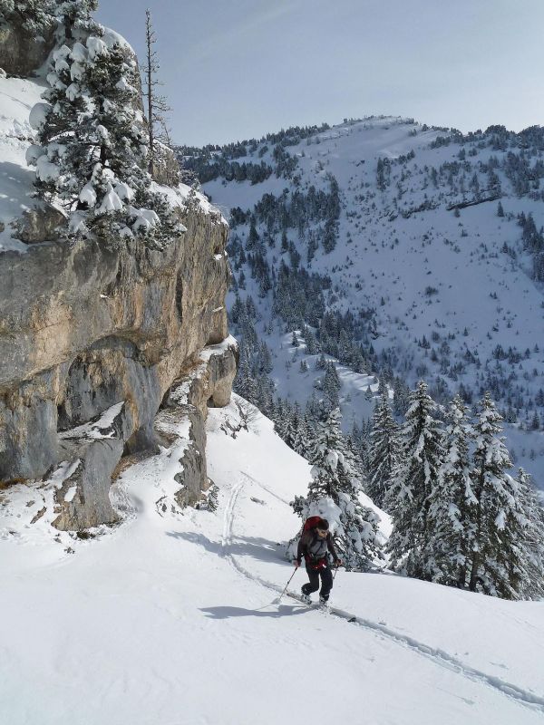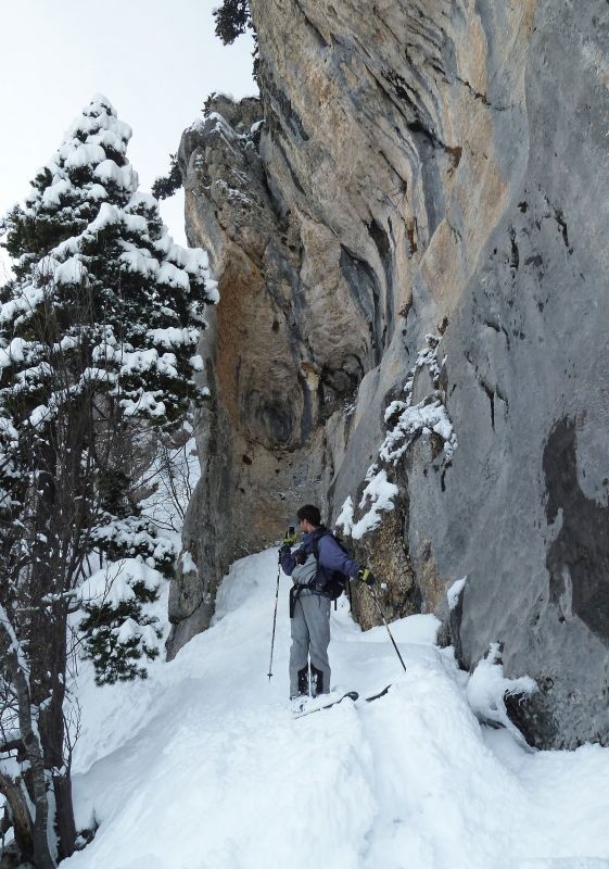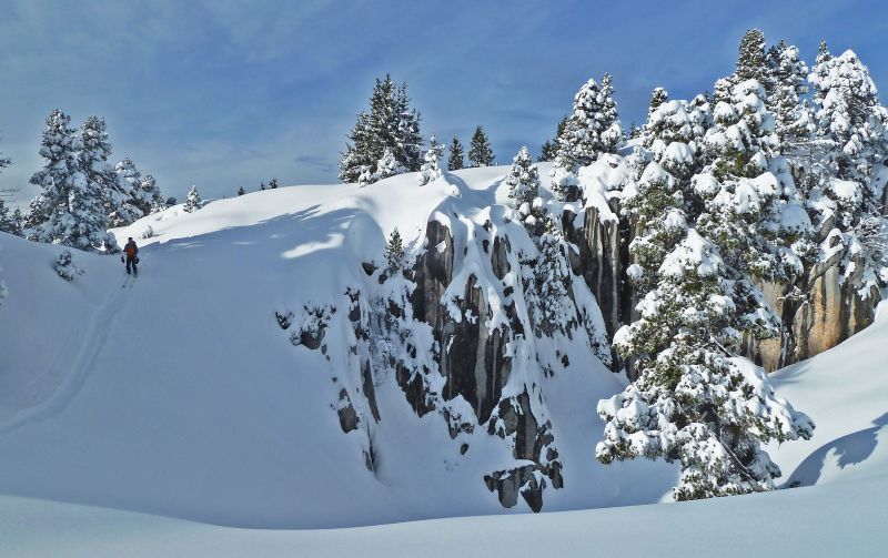 Solitude quasi intégrale aujourd'hui. Des traces partaient de Pratcel vers l'alpette de la Dame. Puis traçage montée comme descente, d'abord dans le décor féérique du versant est du Pinet, où les sciallets fourbes sont restés bredouilles, puis sur le rebord des Belles Ombres pour trouver le fameux "pin isolé", sésame du couloir est.