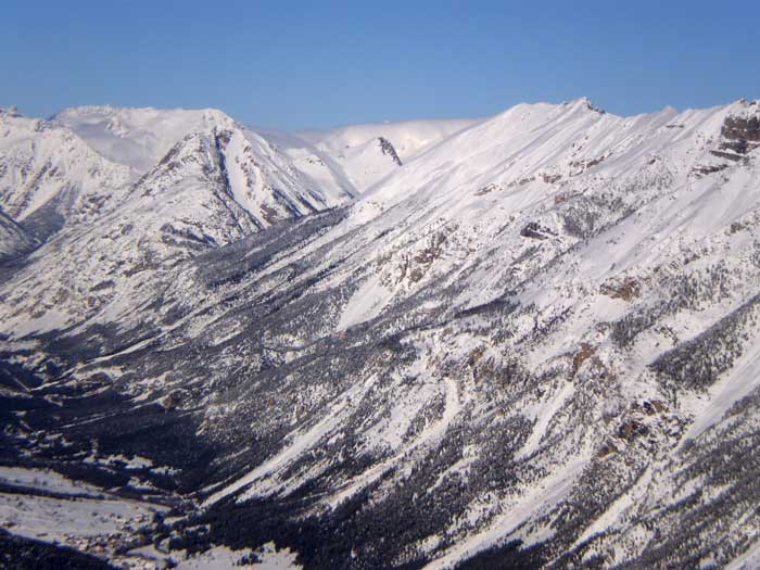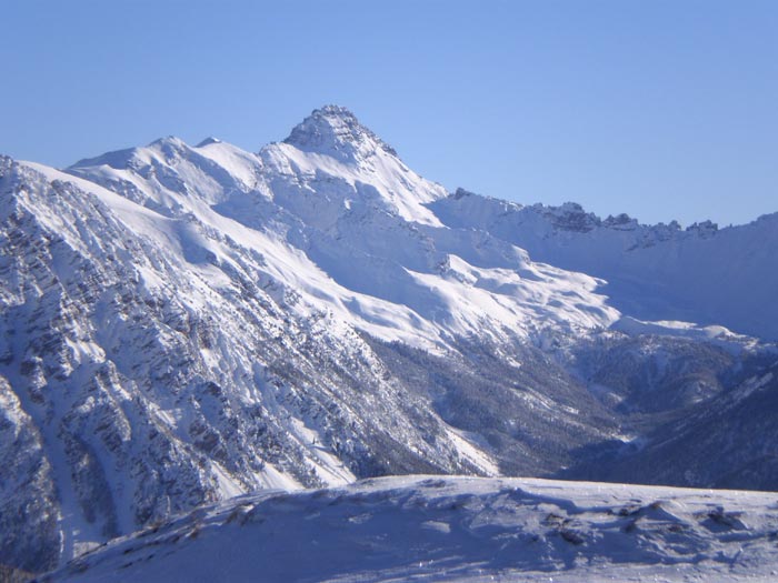 Montée en suivant plus ou moins la piste du fort d'Anjou, en coupant souvent. Puis crête du point du jour jusqu'au grand bâtiment militaire au point 2122. Traversée à droite en suivant le GR puis montée directe au fort de l'Infernet. Descente jusau'au point 2122, puis dans la forêt ou on trouve des passages