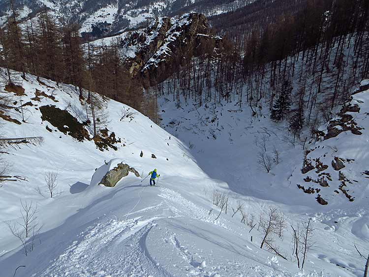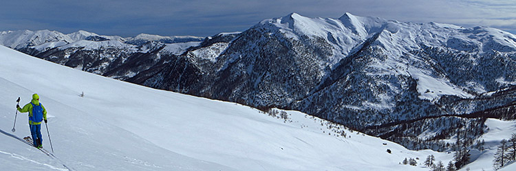 Preit >> rio Valetta >> col 2340 au sud du Becco dell'Aquila >> traversée vers le Nord >> descente ouest >> remontée au Giobert >> Descente NE sur le Colombiers >> San Sebastiano
