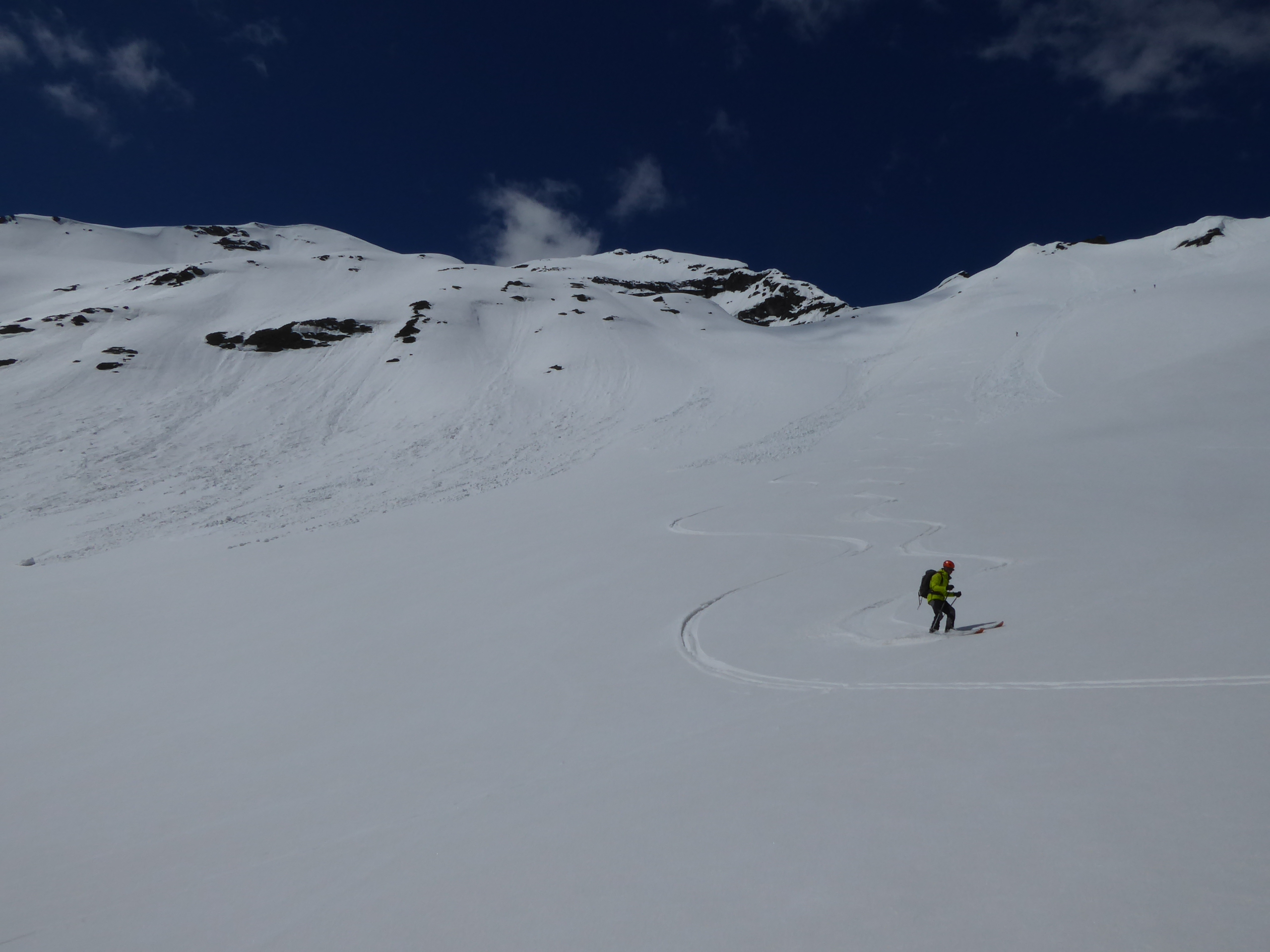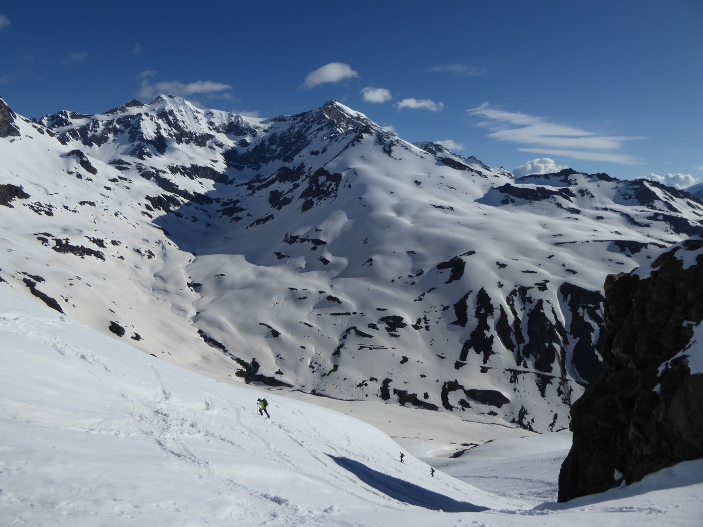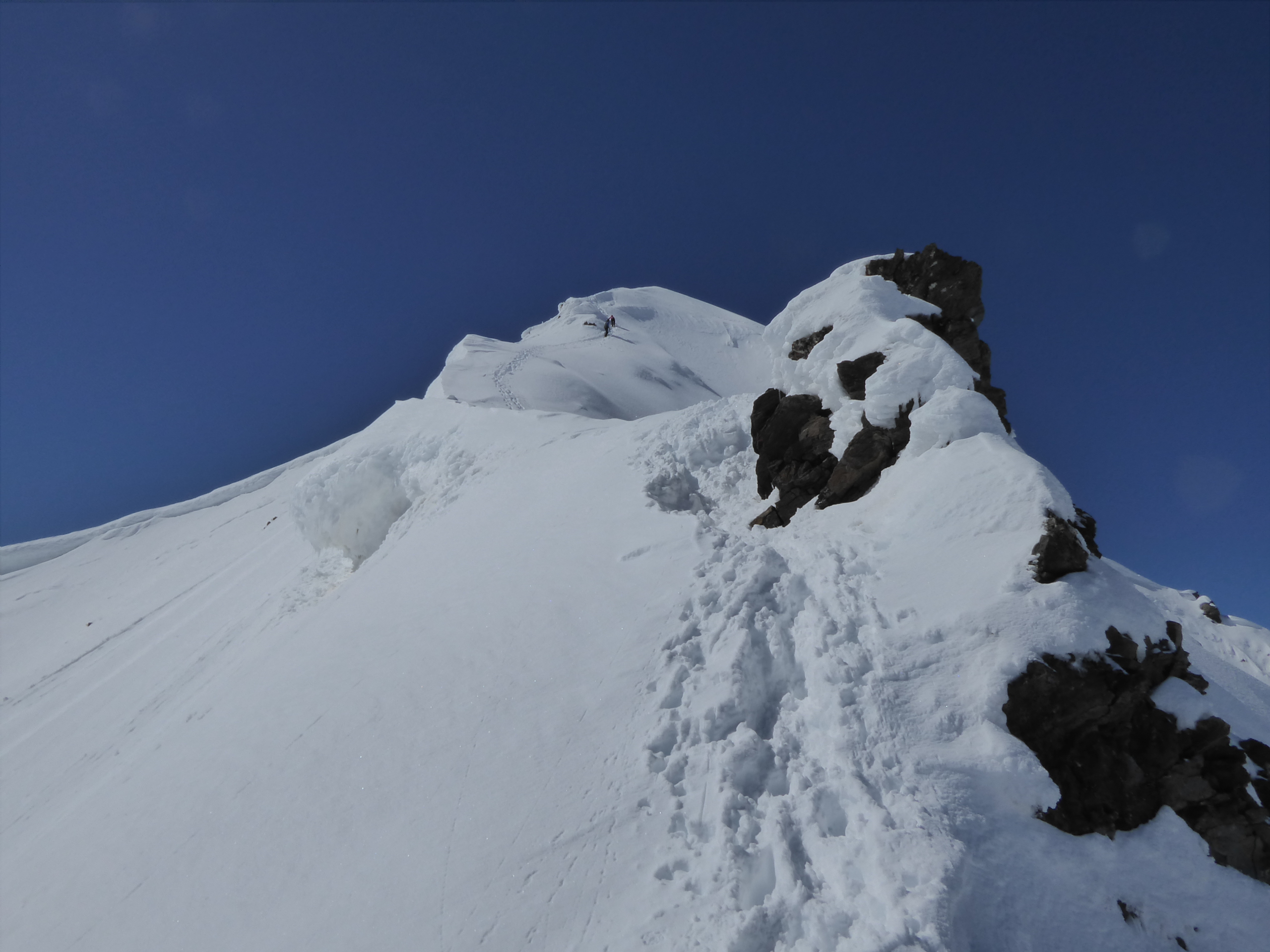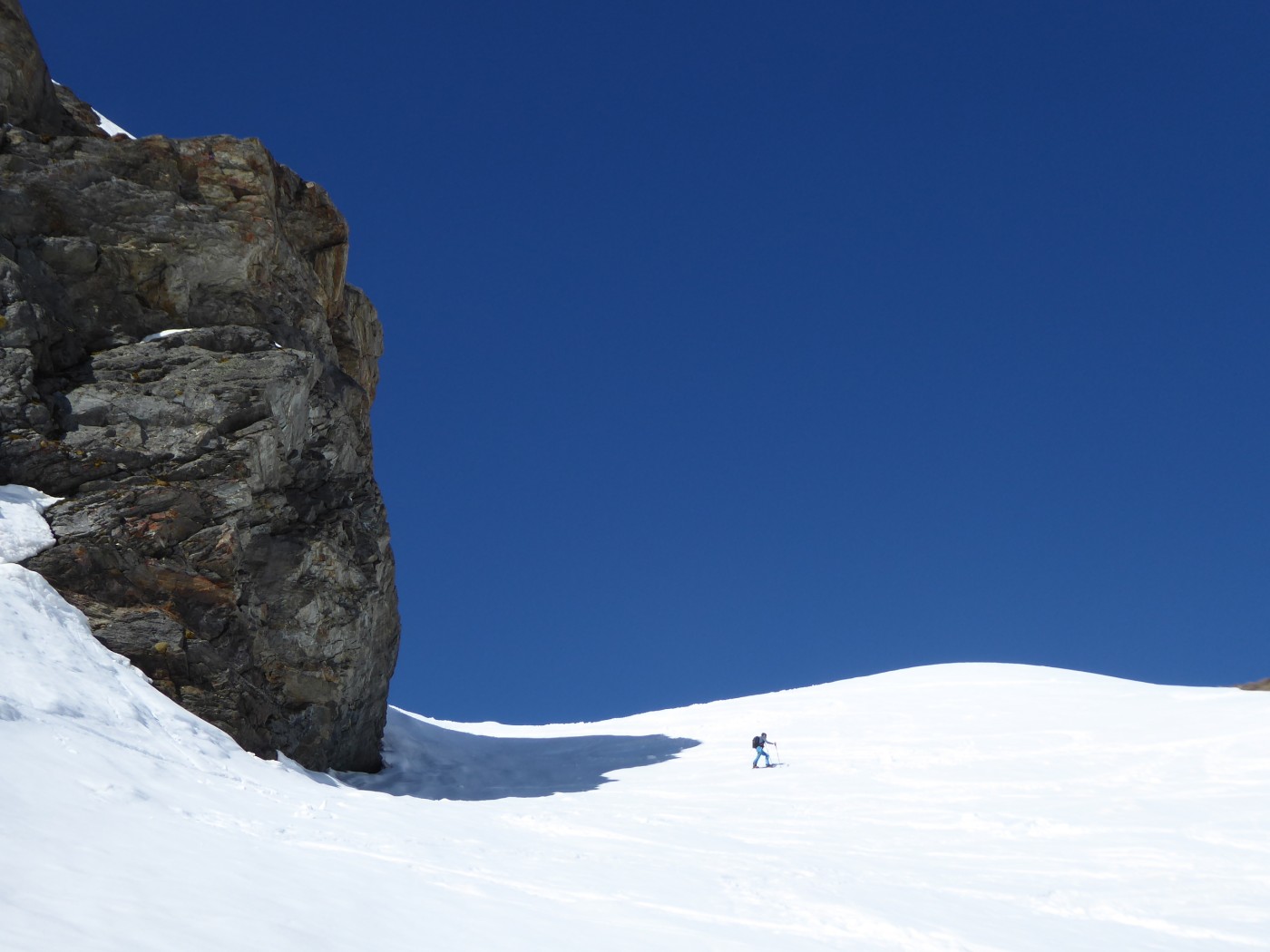 Une quinzaine de randonneurs sur l'itinéraire mais on ne se gène pas. Du monde à la pointe Maurin aussi et à la becca di Giasson. Si les températures restent froides, on va skier encore un moment dans le secteur. Les pentes raides ont commencé à purger et ne font pas très envie (Grande Rousse).