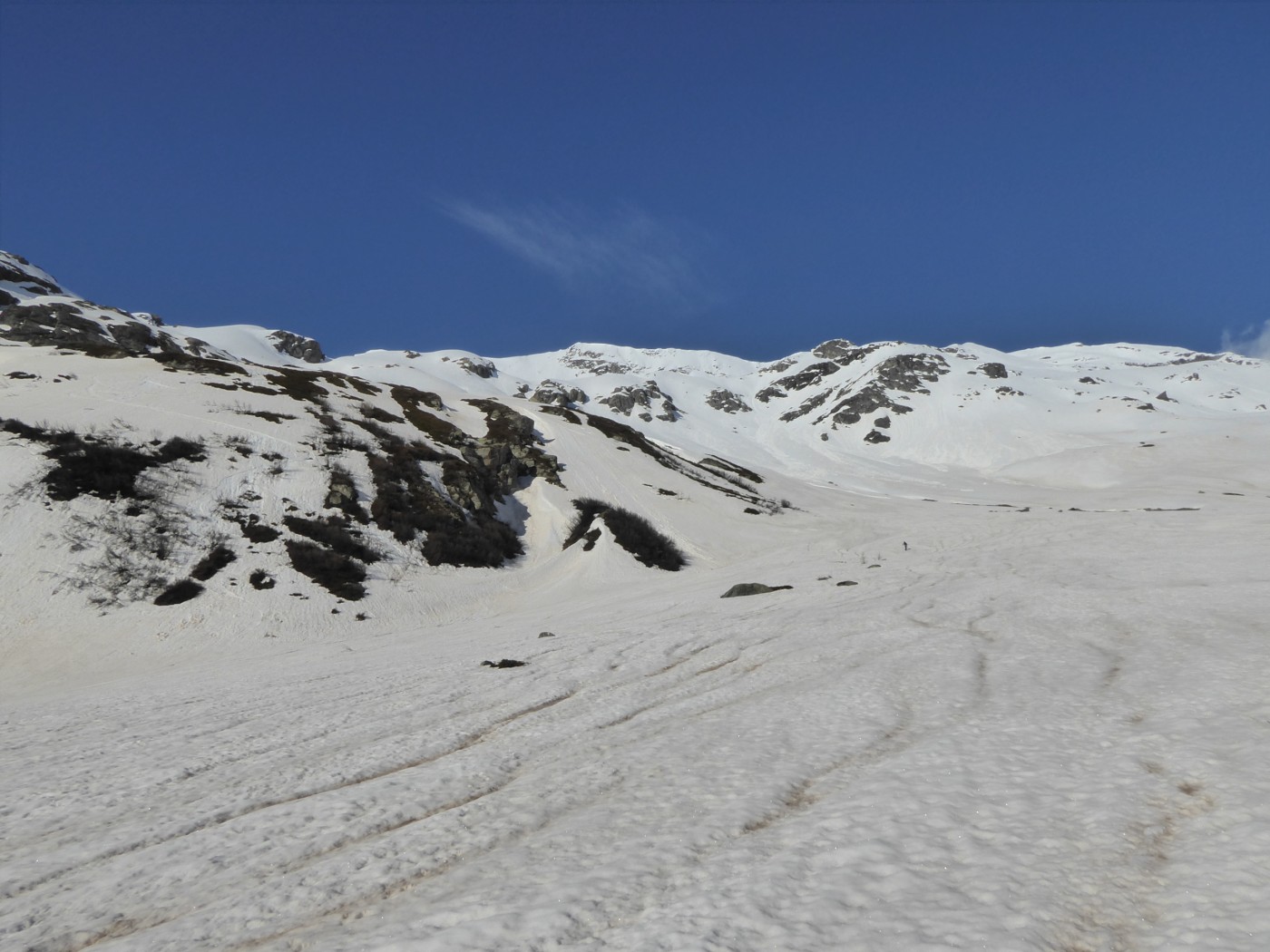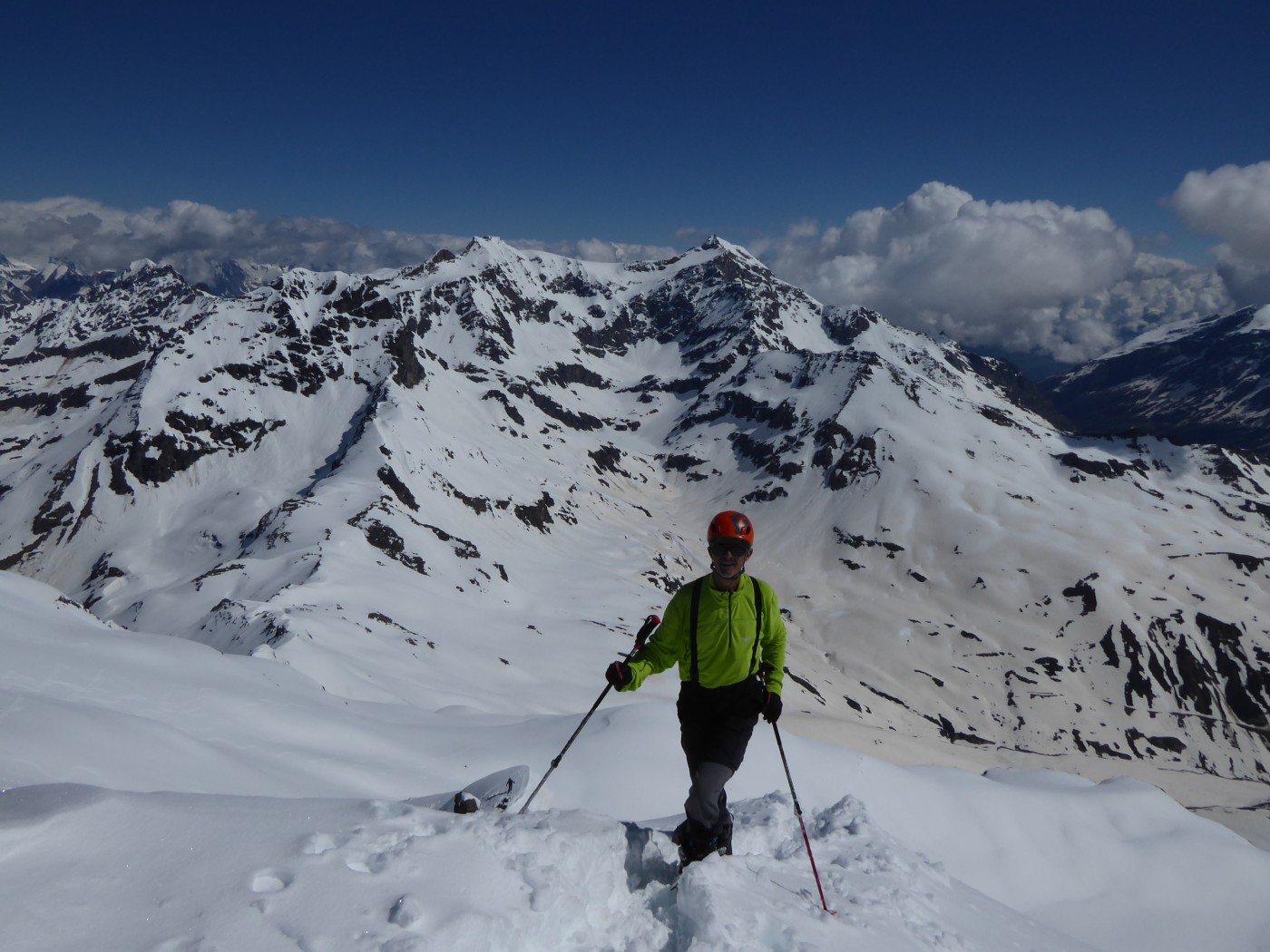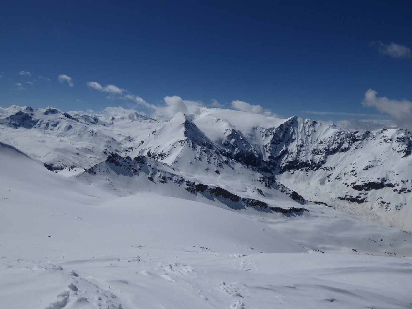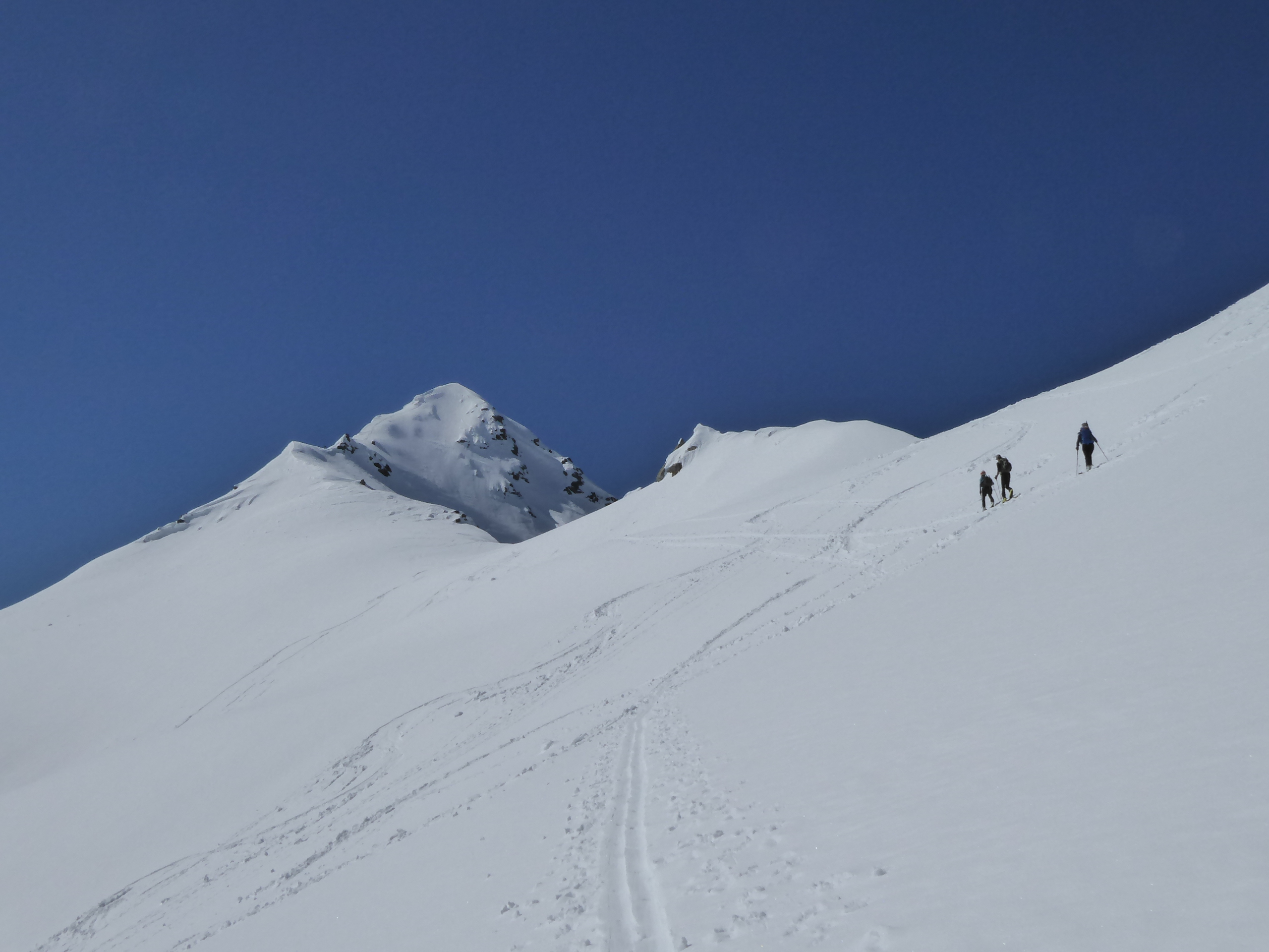 Une quinzaine de randonneurs sur l'itinéraire mais on ne se gène pas. Du monde à la pointe Maurin aussi et à la becca di Giasson. Si les températures restent froides, on va skier encore un moment dans le secteur. Les pentes raides ont commencé à purger et ne font pas très envie (Grande Rousse).