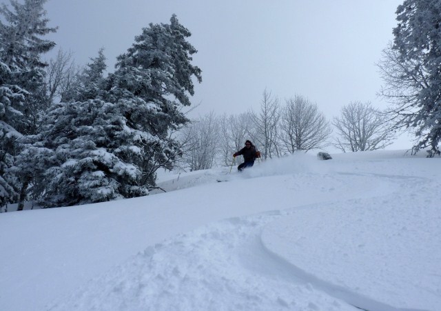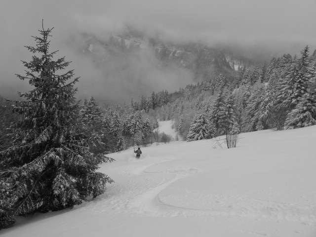 Bonne surprise dans Pravouta ouest avec une bonne couche de poudre restée légère. Charvet à peine moins bon avec une épaisseur moindre laissant parfois sentir le fond dur en partie basse, mais ç'est très relatif