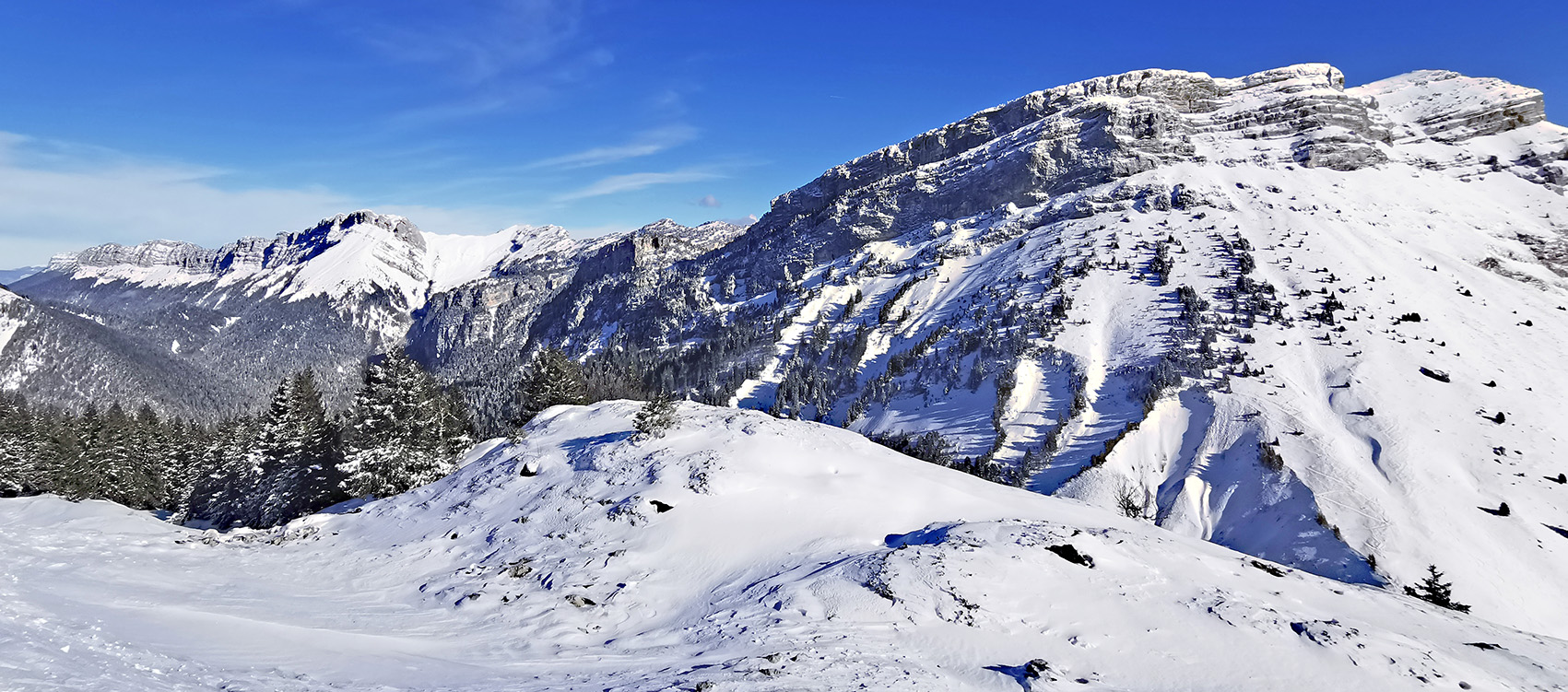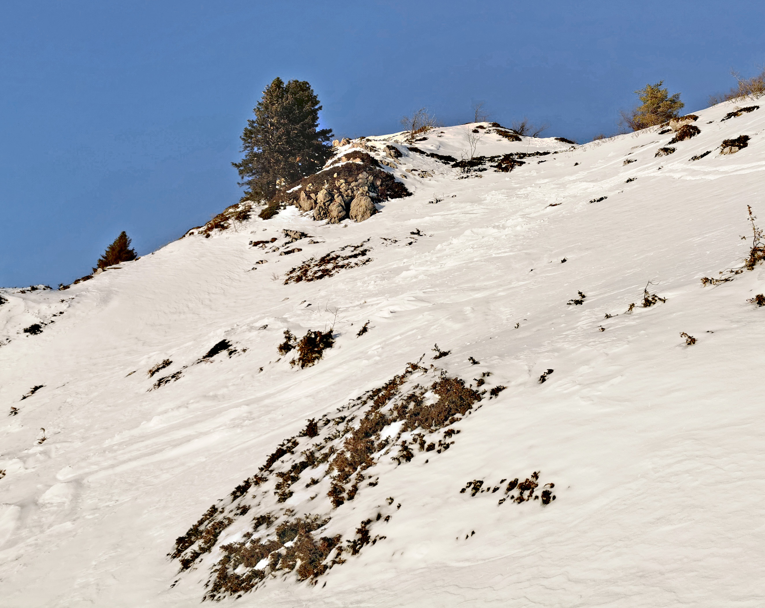 - Belle poudre sur les gros blocs du versant ouest au-dessus de Plat Ferrier