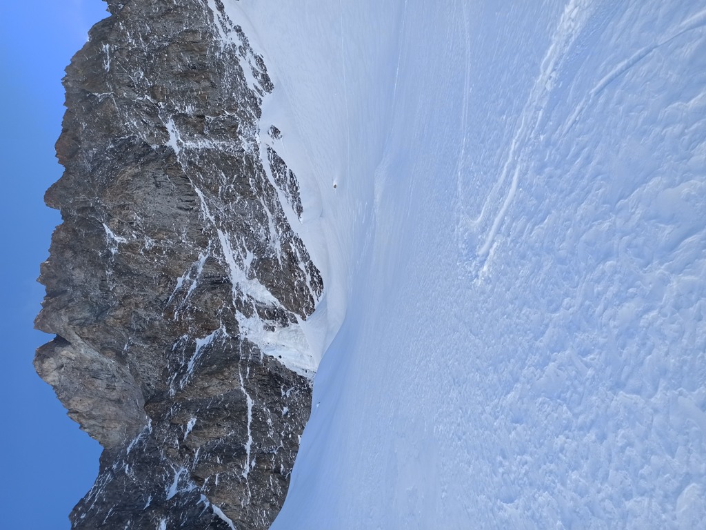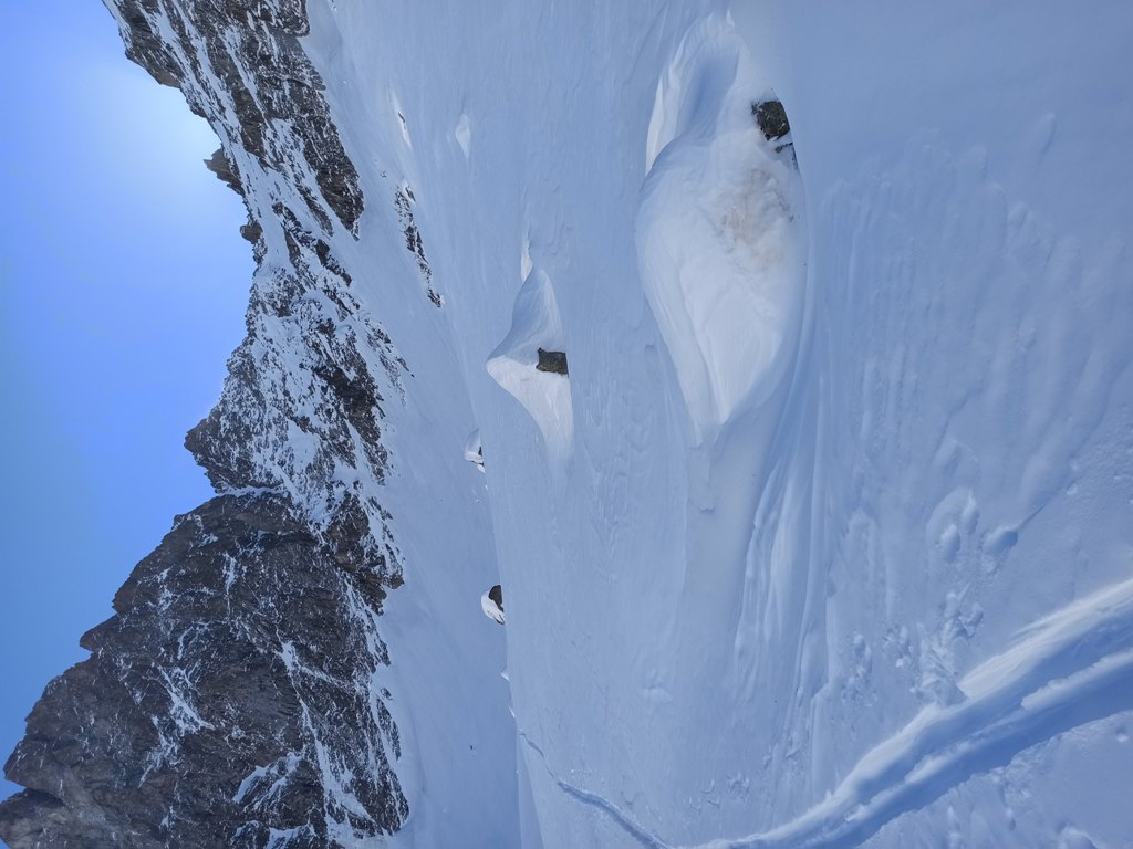 Les pentes ouest et sud ont purgée. Le manteau neigeux n'a pas transformé là où nous sommes passés.